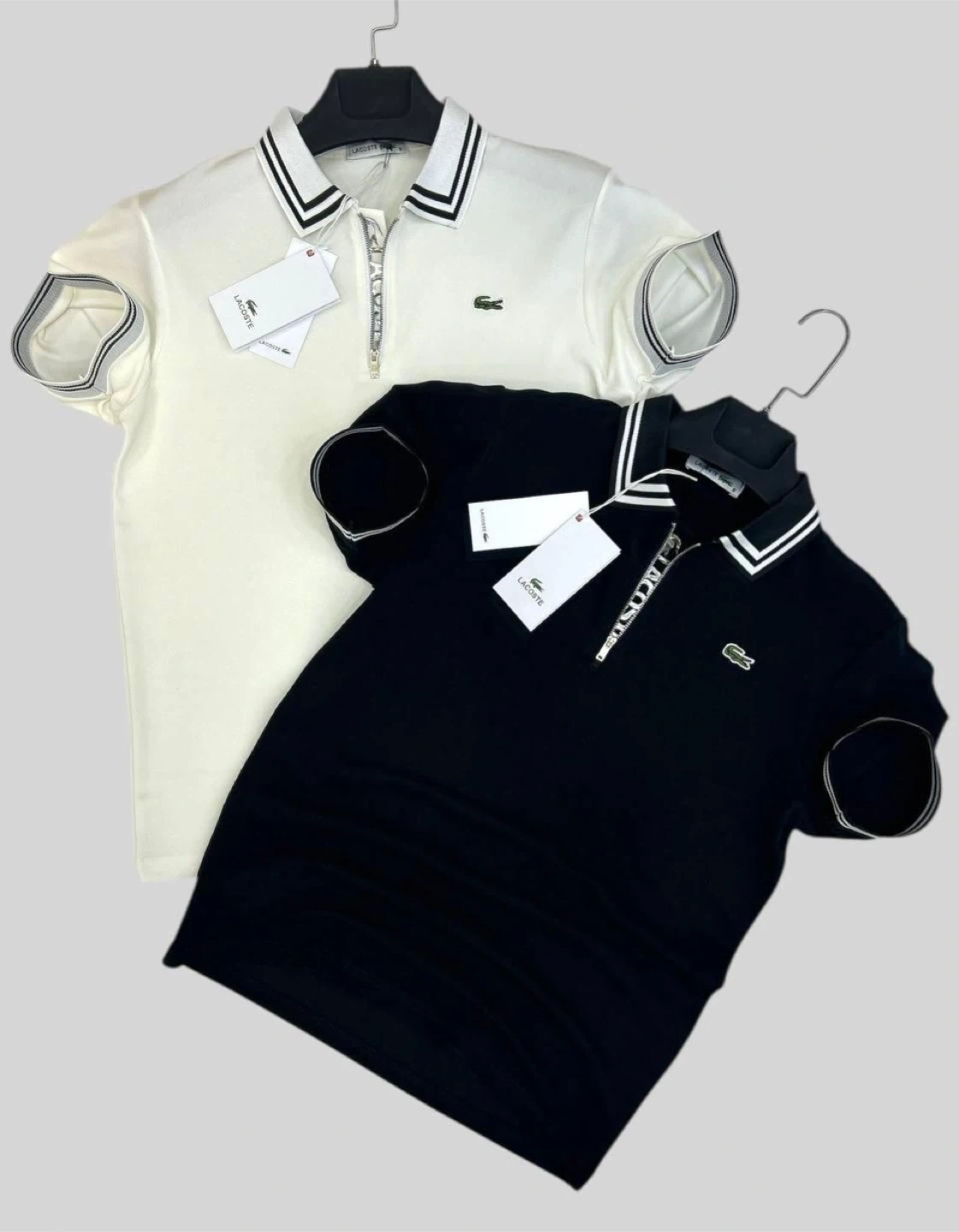 π₯ 2 stylish polos (black & white) π Premium cotton β soft & breathable β‘ Classic Lacoste logo with zipper detail & striped collar π Perfect for casual wear, sporty chic or street fashion β Limited stock β grab yours now before itβs gone!