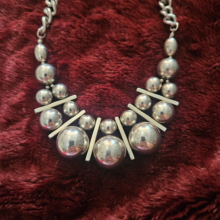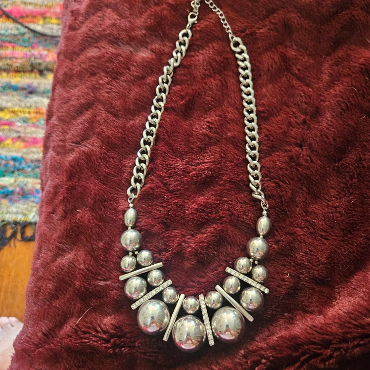 # JMI-necklace silver ball design w/ clear glass,very good condition.