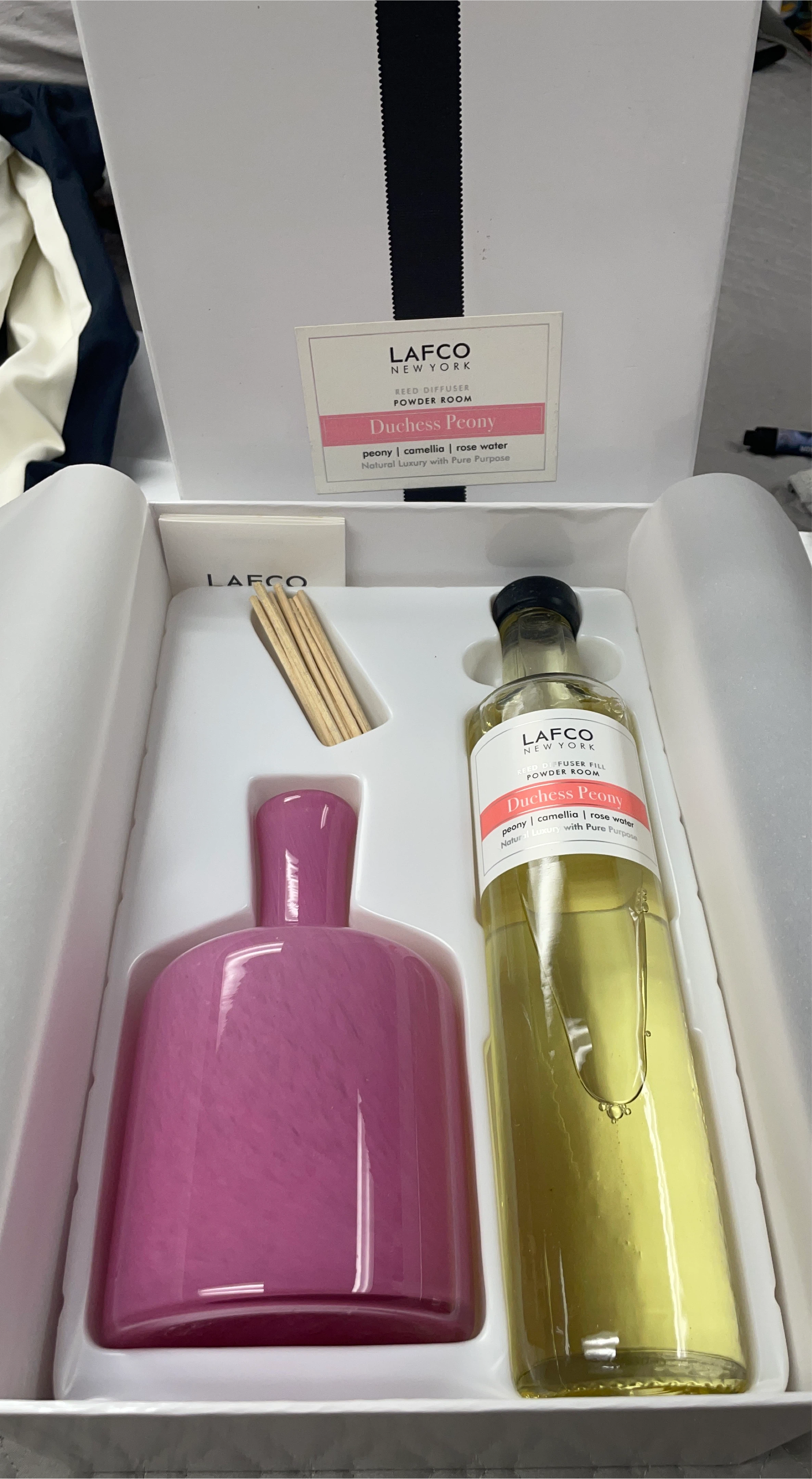Selling a LAFCO New York Reed Diffuser in the Duchess Peony scent! The scent includes peony, camellia, and rose water. It's a natural luxury with pure purpose. Comes with the original box and reeds