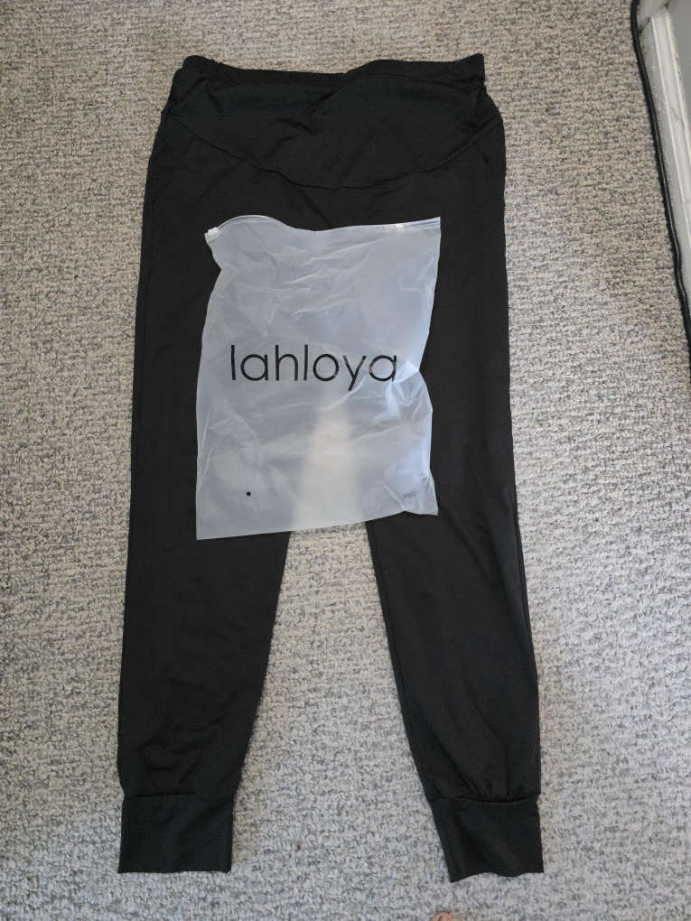 Selling a pair of Lahloya maternity joggers in black, size large. They are brand new condition and come with the original packaging. Perfect for comfy wear during pregnancy!never used
