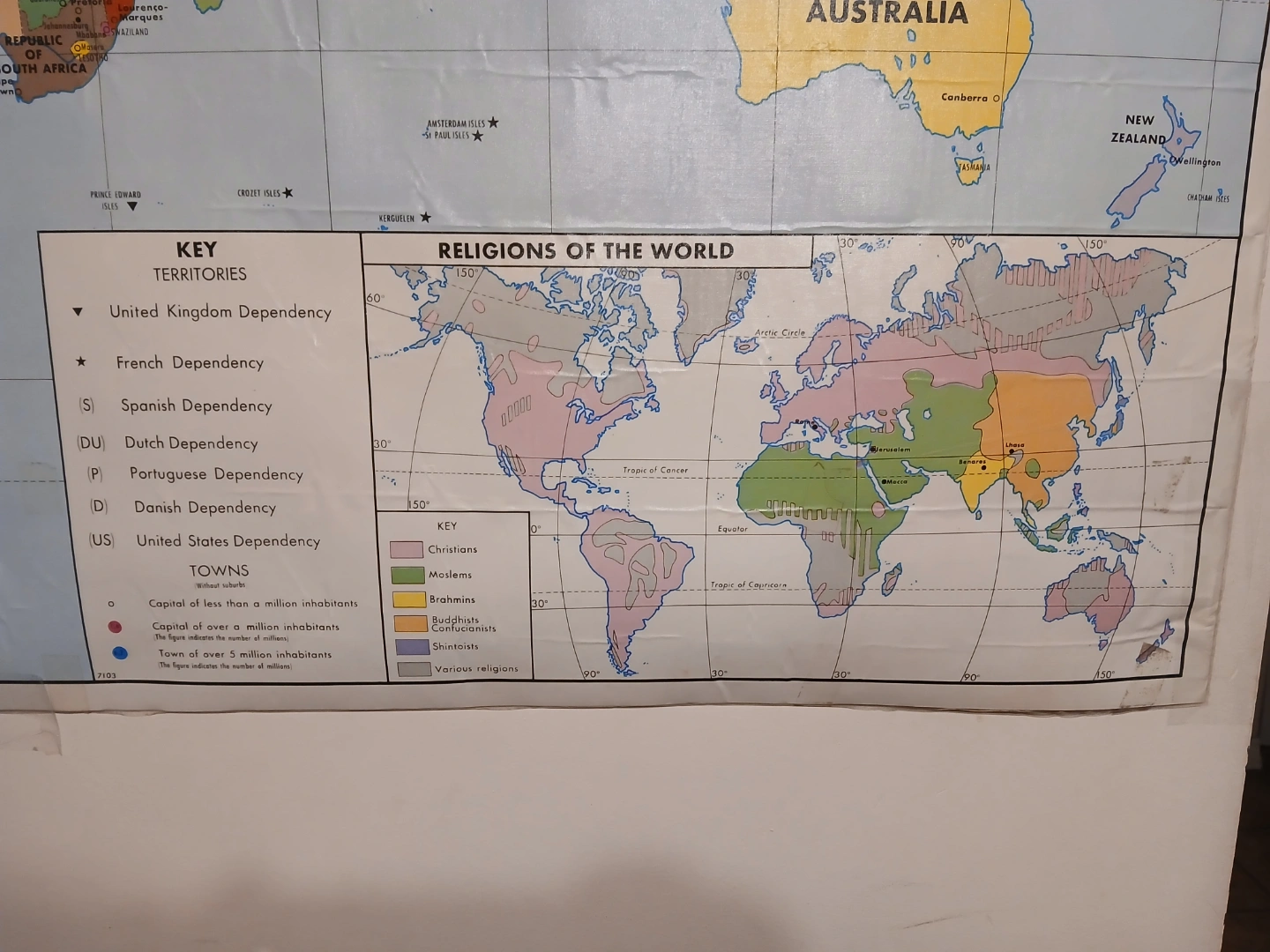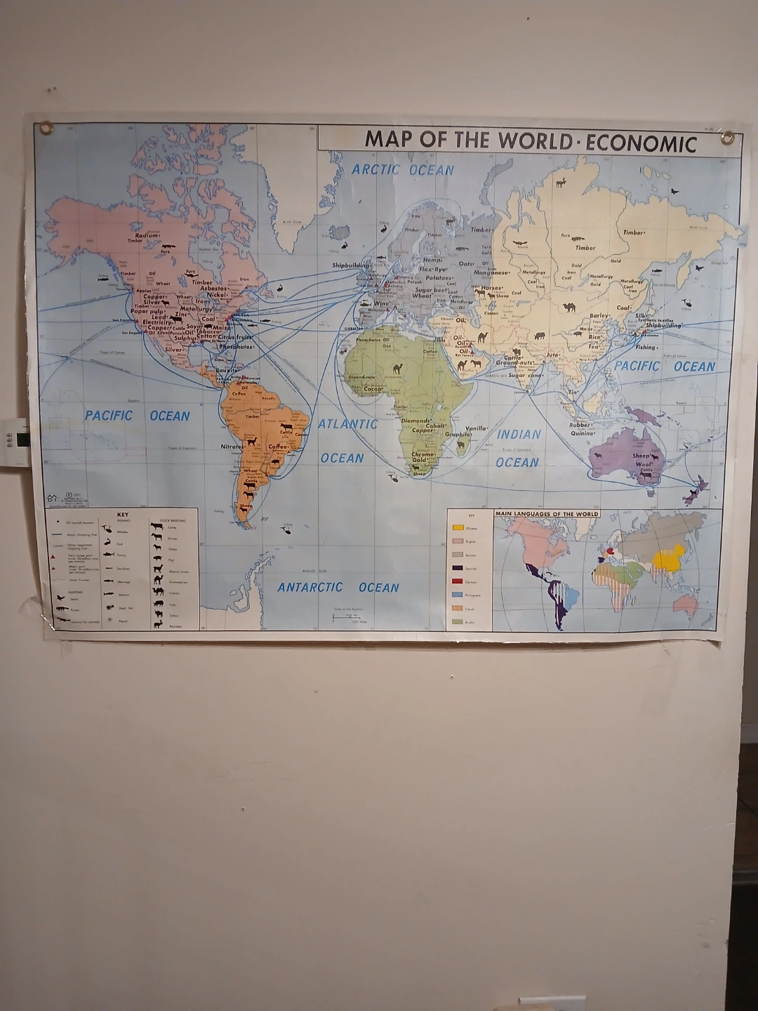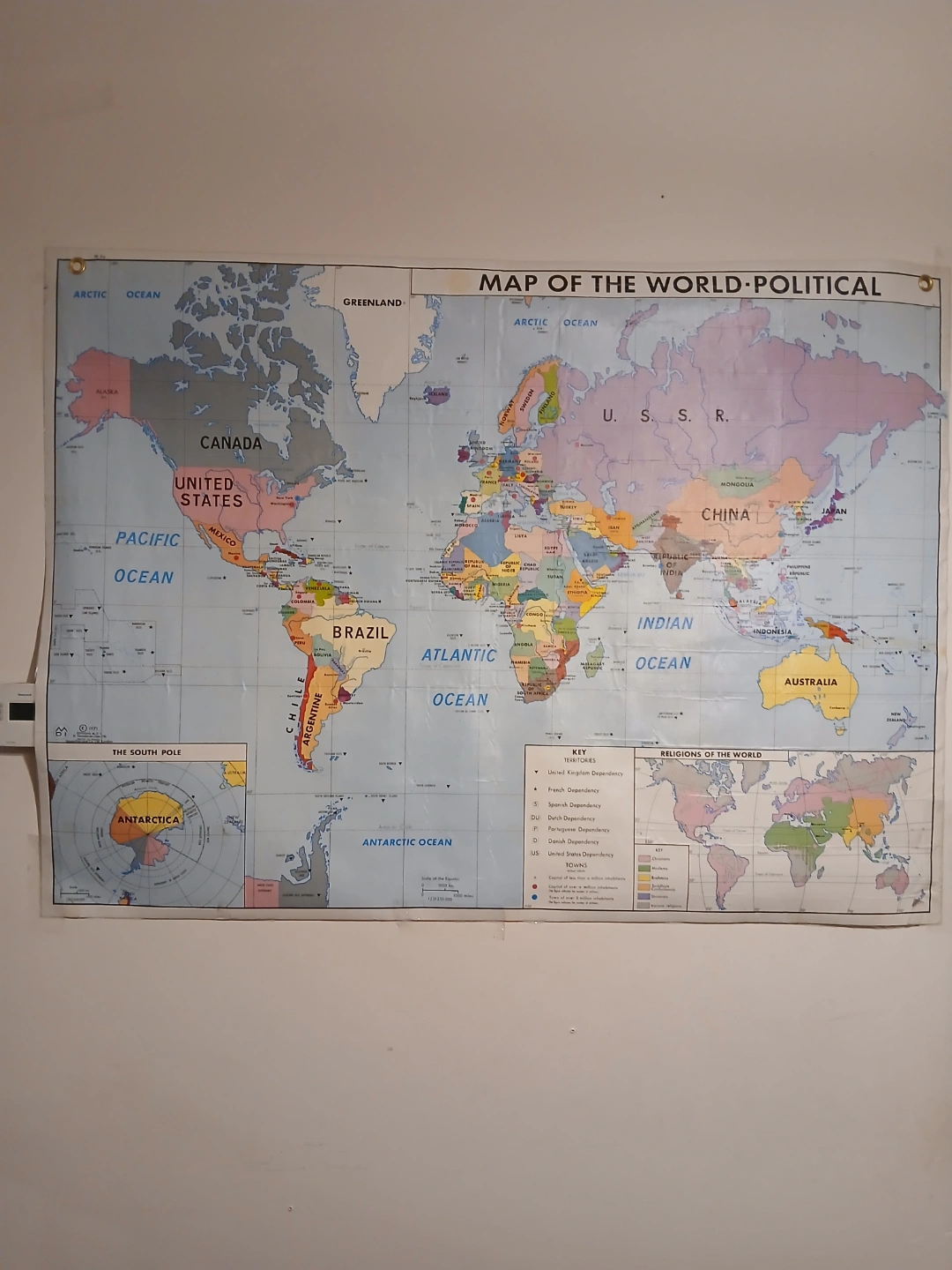 Laminated MDI 1971 edition vintage map. -Map of the world economic and political. 36inch Tall X 48inch wide