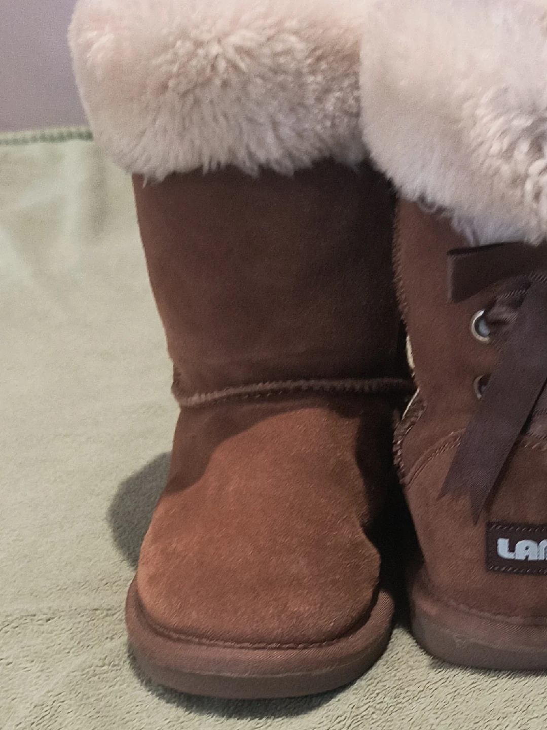 65Selling a pair of Lamo brown boots in size 2. These boots are in good condition and feature a soft, fluffy lining