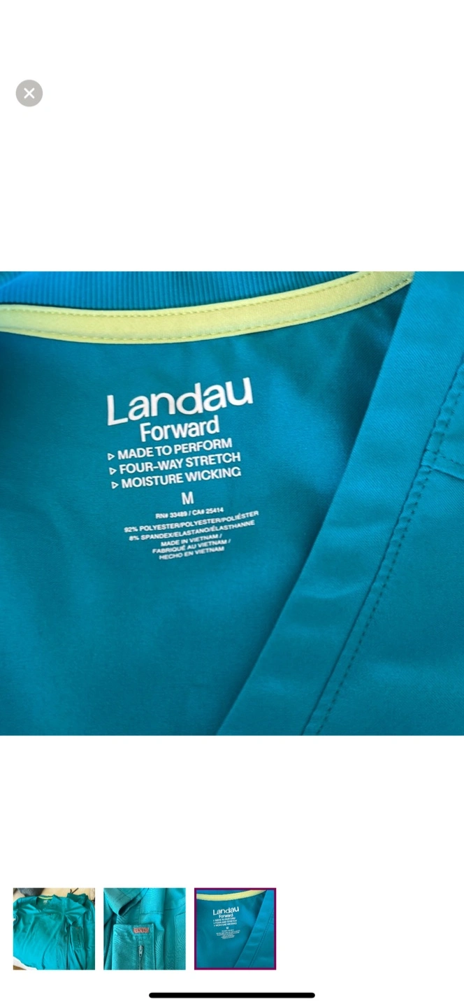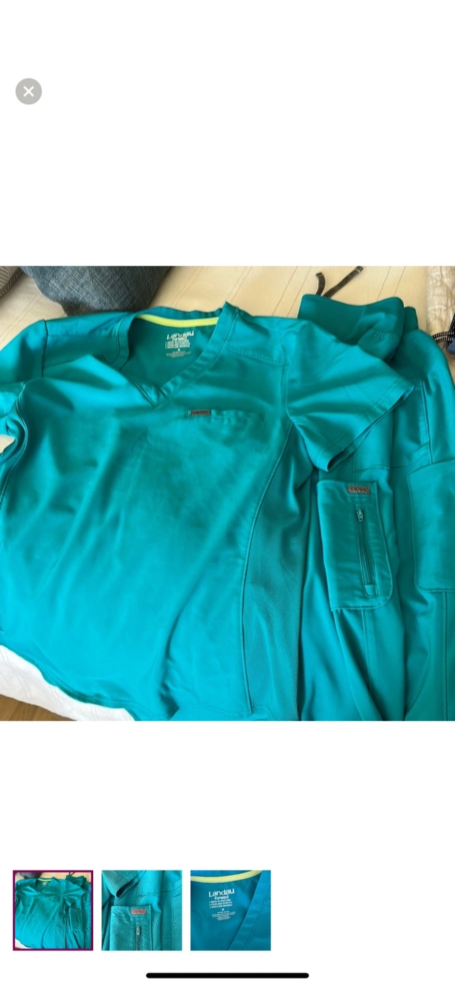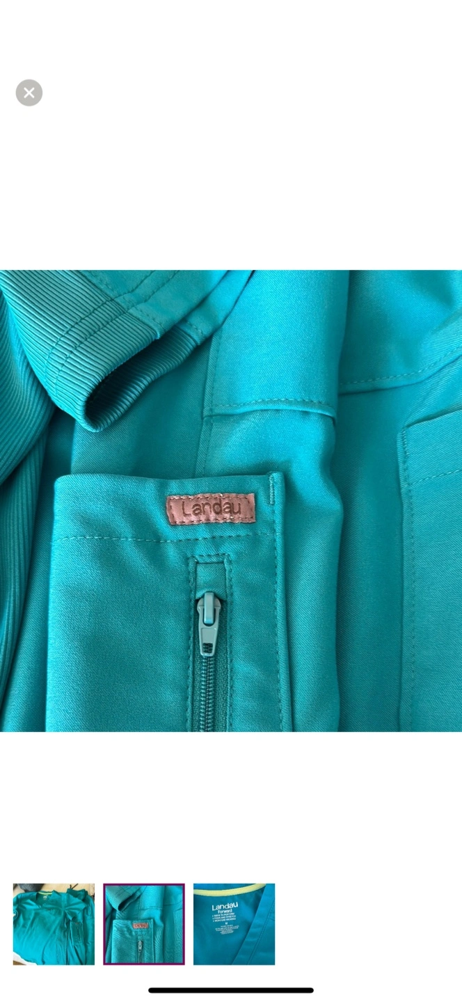 Selling a Landau Forward scrub set in a vibrant teal color! It's a size M and appears to be in great condition. The material is four-way stretch and moisture-wicking, so it's comfortable for long shifts. Got laid off for my healthcare job. Have never worn.