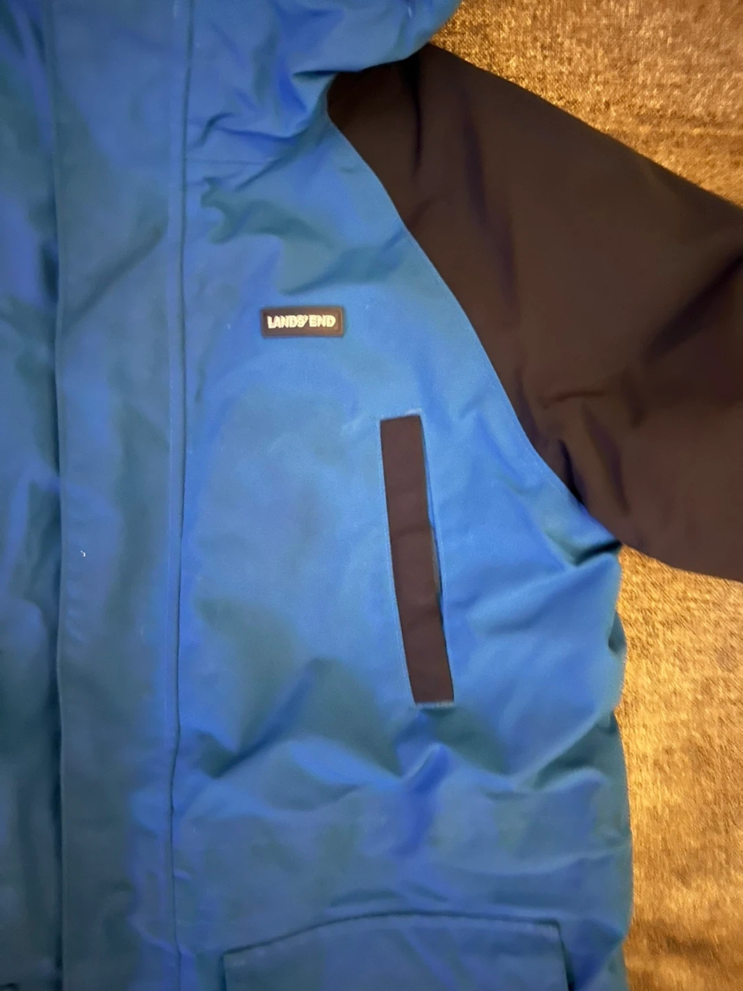 15Lands' End jacket in blue and black. Perfect for the winter season! Lightly used for one season.
