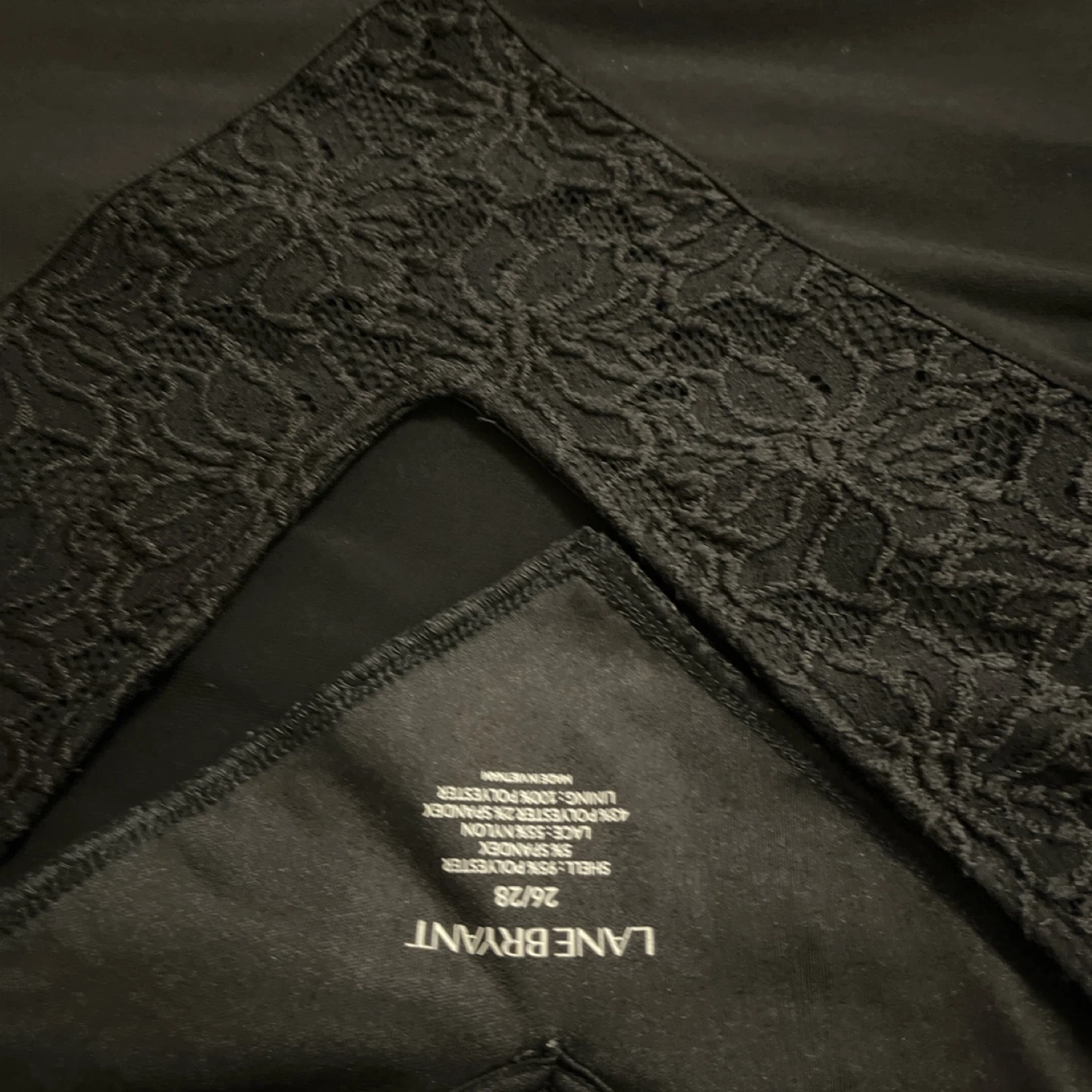 Selling a beautiful black lace top from Lane Bryant in size 26/28. The shell is 95% polyester and 5% spandex, while the lace is 55% rayon and 45% polyester. The lining is 100% polyester