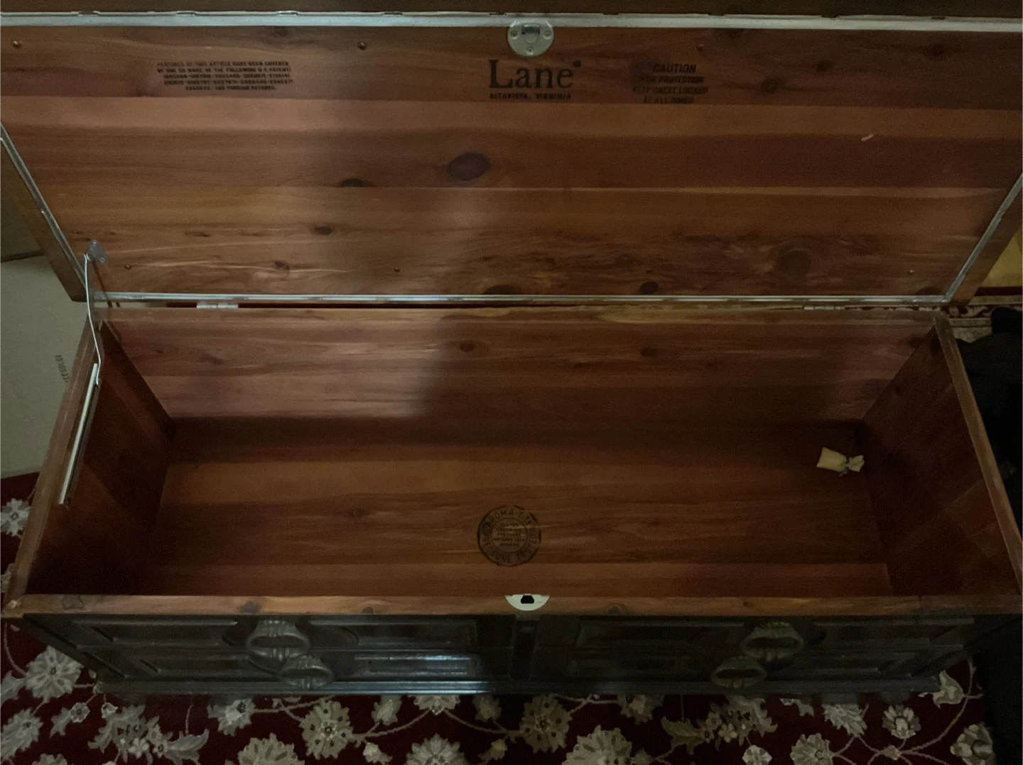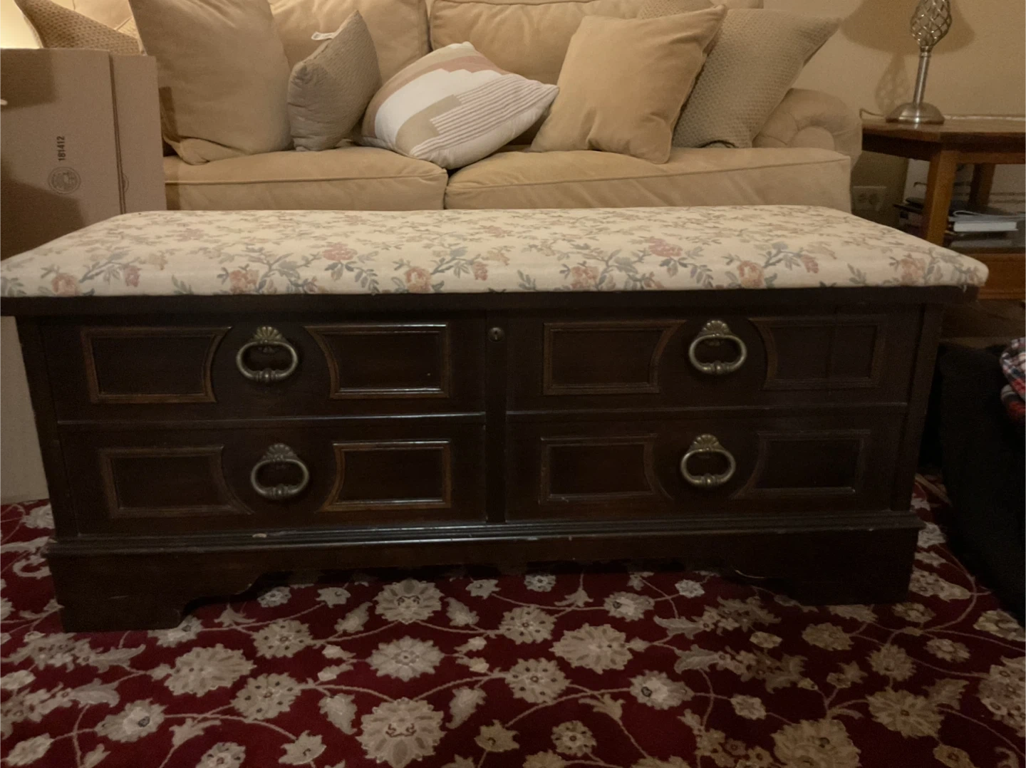 75Selling a Lane cedar chest with a lovely floral cushion top! It's in great condition and perfect for storing blankets, linens, or other items. The chest is made of cedar, which helps to protect your belongings from moths and other pests. The interior is clean and spacious. It would make a great addition to any home!