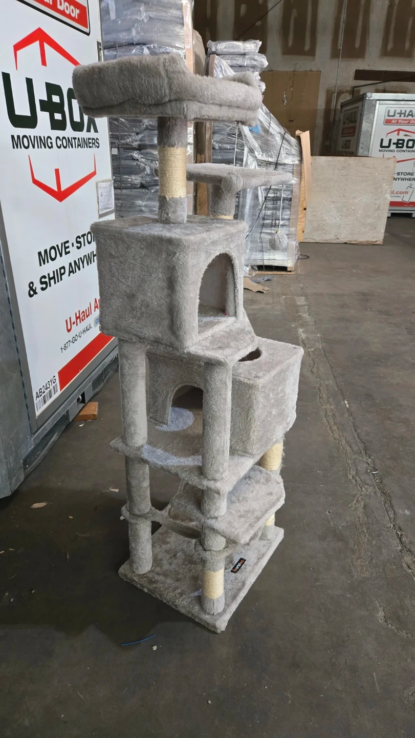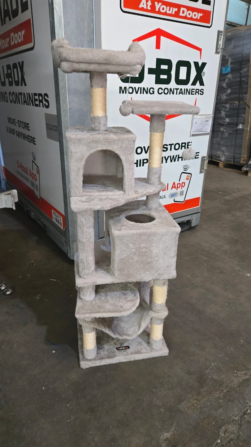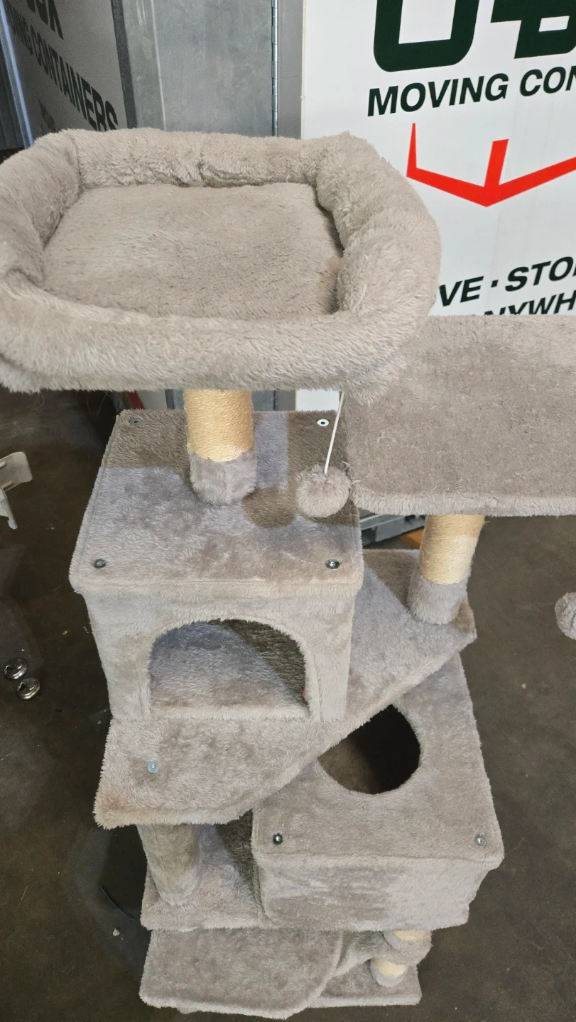 10Nothing wrong with it, just slight wear from the cat using it for a year :) I don't have the dimensions handy but it does unscrew into pieces so it can fit in a car!