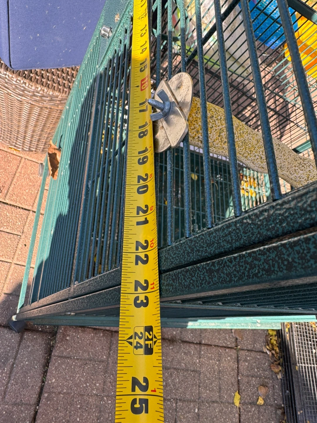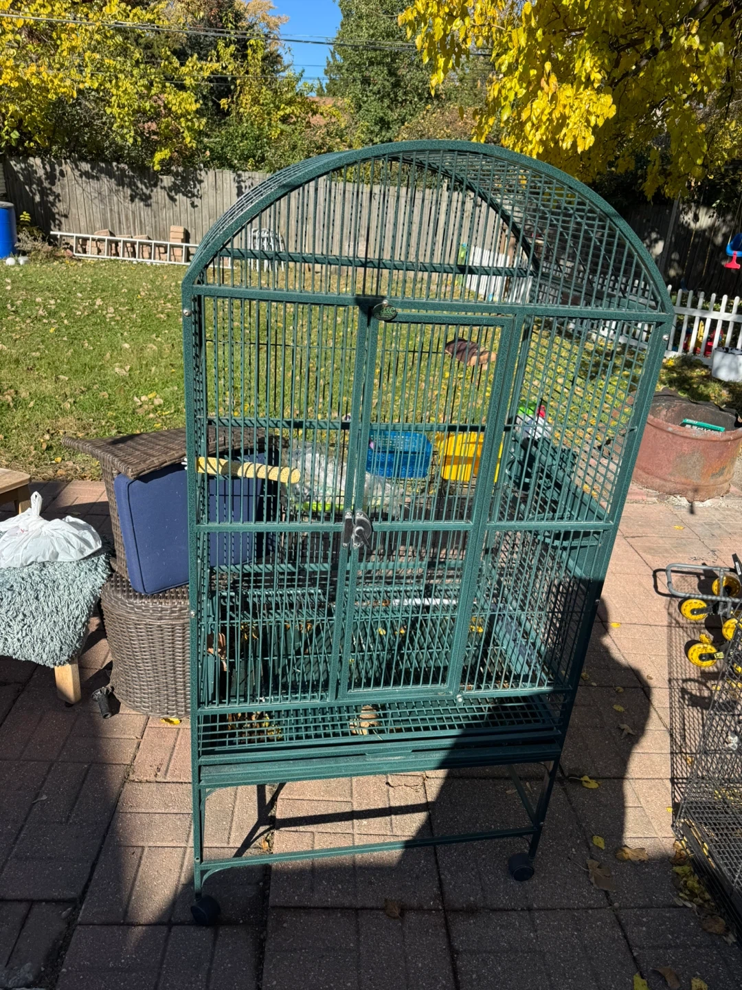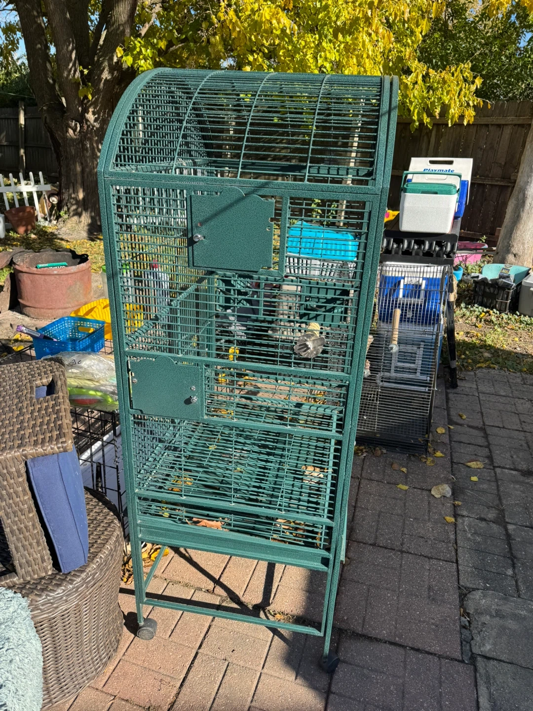 130Selling a large green bird cage. It's about 64 inches tall and 32 inches wide. It's in good condition and ready for a new feathered friend