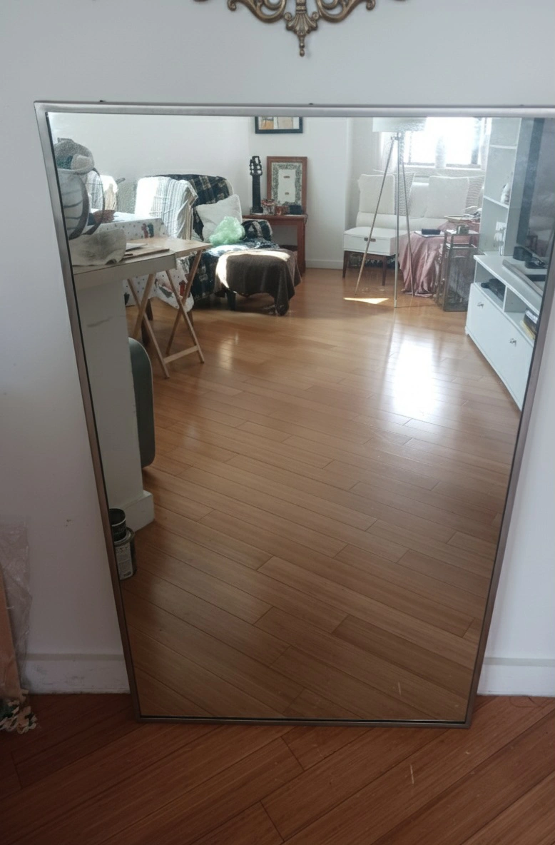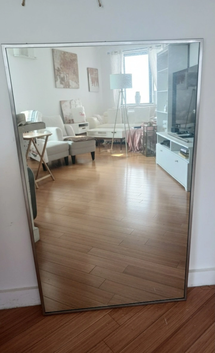 Description: Add a sleek and contemporary touch to your space with this large wall mirror featuring a clean silver frame. Its minimalist design fits perfectly with modern, chic, or neutral interiors. Great for brightening up any room or creating the illusion of more space. Ideal for use in bedrooms, living rooms, hallways, or dressing areas. Details: Condition: Excellent (no cracks or scratches) Frame Color: Silver Orientation: Vertical or Horizontal Style: Modern / Minimalist Perfect for: Home décor, apartments, studios, or anyone looking to enhance their space with a functional and stylish mirror. 🚫 Serious buyers only | No lowball offers | No refunds ⏳ Holds available with deposit via CashApp, Zelle, or PayPal 📍 Pick-up in Bronx, NY