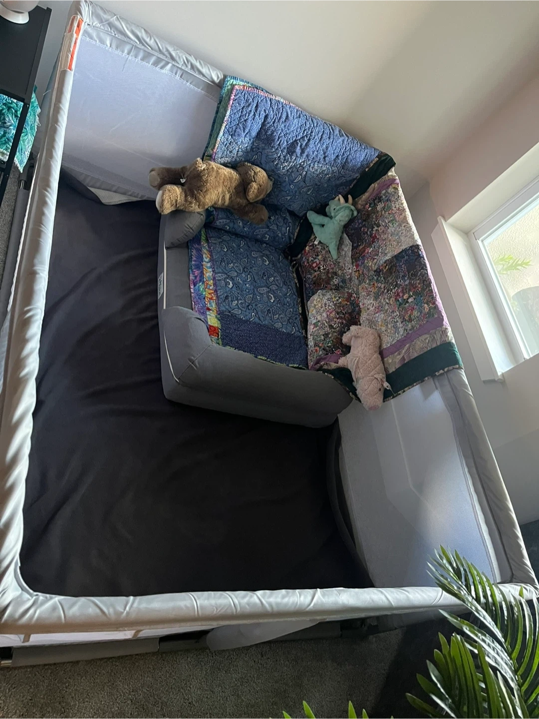 Simple playpen, sets up like a tent with poles. Purchased and used with my super senior dog. Works perfectly when lined with a large reusable puppy pad as pictured. Will throw in the puppy pad blanket for free if you like. Please keep this in mind, while it has been double hot washed - it has been used for a dog.