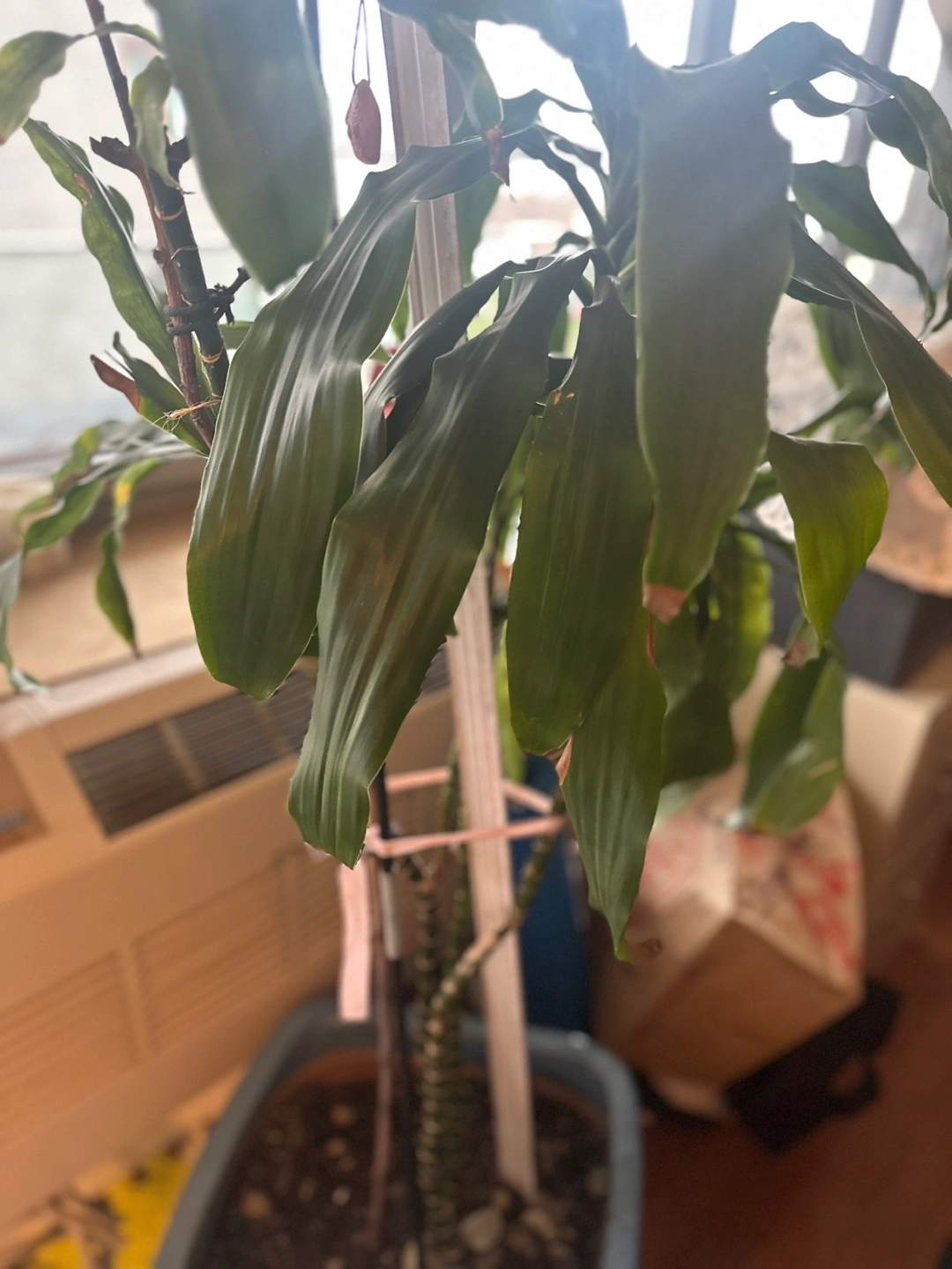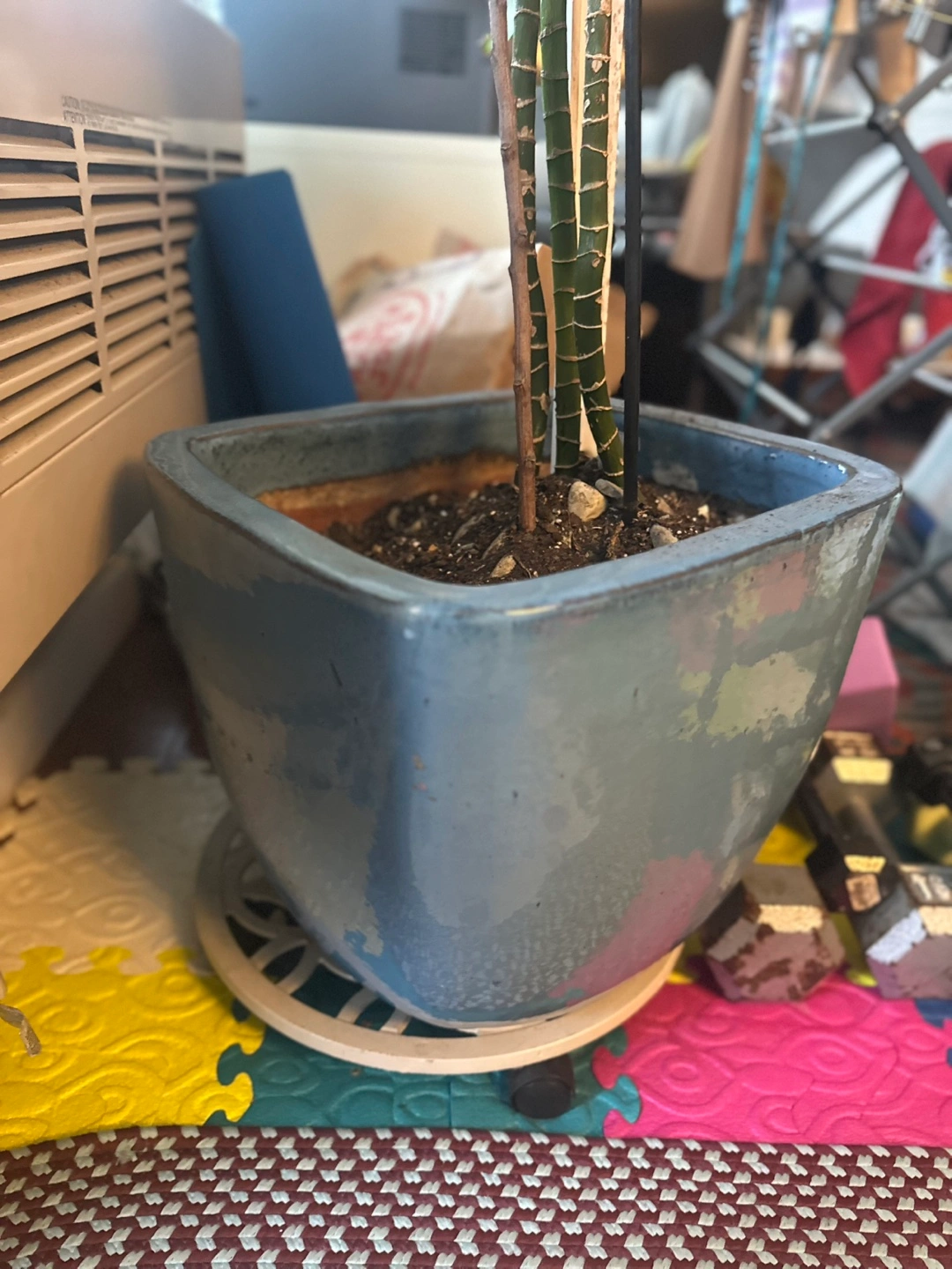 A potted plant with a blue ceramic pot. It's a lovely addition to any room! 3 mass canes about 4 feet tall in the pot. The pot is about 14”X16”. Kind heavy so need a car or wheel cart to transport. Originally bought for about $150. Cash or Zelle only.