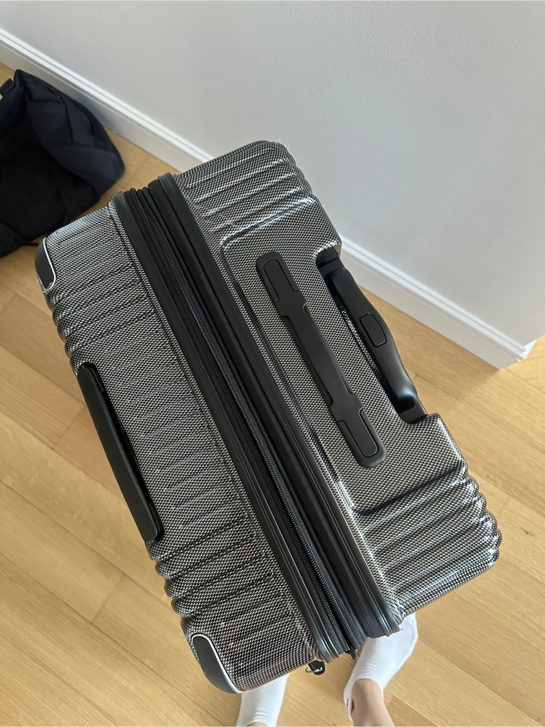 78Free XL suitcase! Only used once after my husband and I needed an extra bag from our trip to Japan this summer. This suitcase is designed to be durable and lightweight, making it perfect for travel. It features a sleek design and ample space for your belongings. Ready for your next adventure!