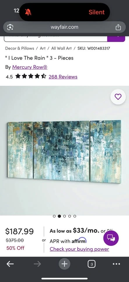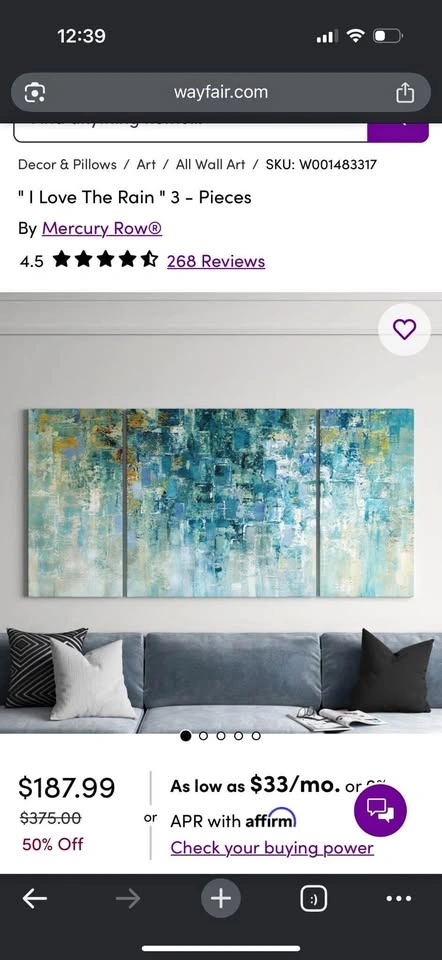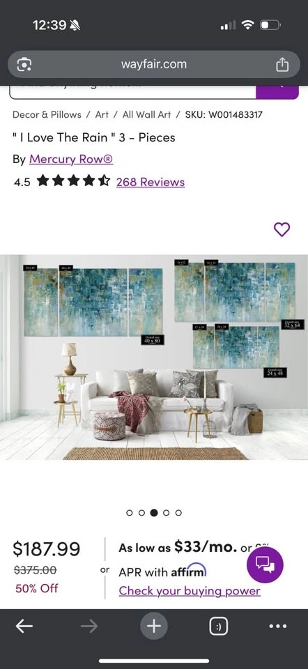 Show allLarge Wall Art 3 panels- 40" H x 80" W x 1.5" D