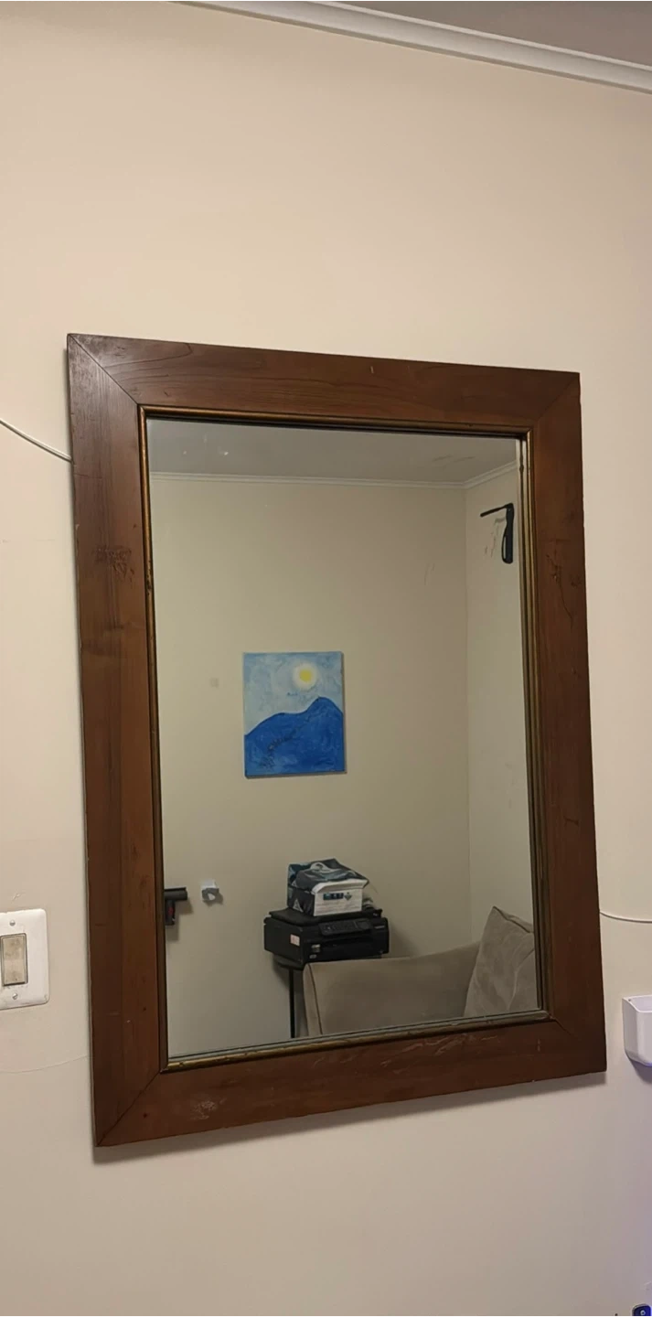 60This beautiful solid-wood framed mirror adds warmth and character to any space. Bedroom, hallway, entryway, or living room. The frame is durable, high quality wood with a rich natural finish. Large mirror surface is great for full face/upper body view Sturdy wooden frame Neutral design that fits modern, rustic, or classic decor Some light wear on the frame but nothing major. Mirror glass is clear with no cracks. Pickup in Astoria, NY Cash or Venmo accepted! DM me before someone else grabs it!