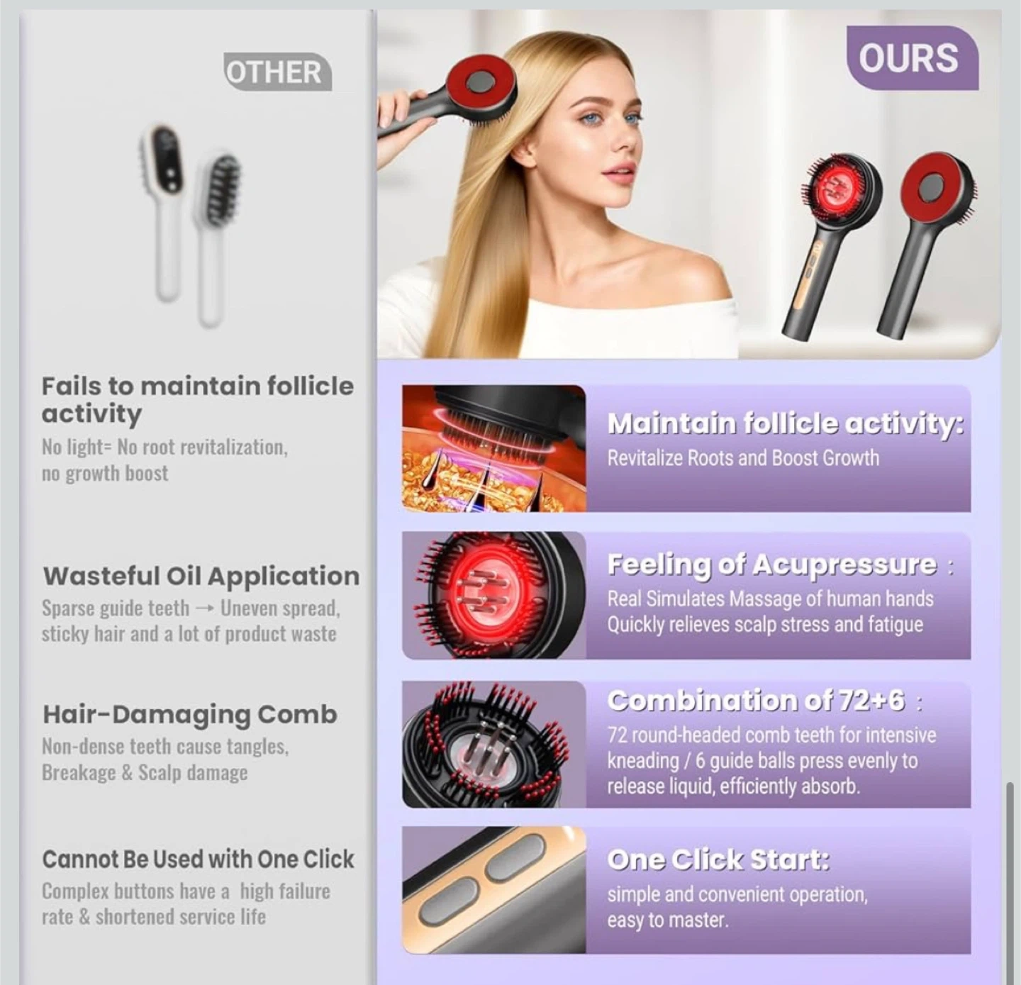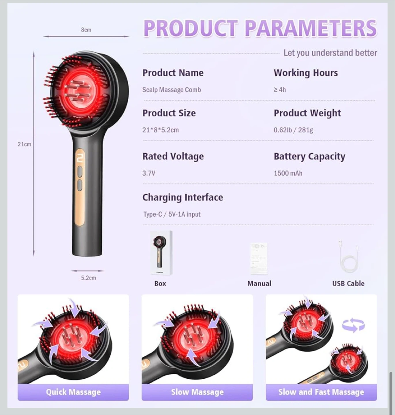 172Electric Scalp Massager, 3-in-1 Hair Oil Applicator & IPX7 Waterproof Scalp Brush, Cordless, Portable Head Massager for Home & Travel, Red