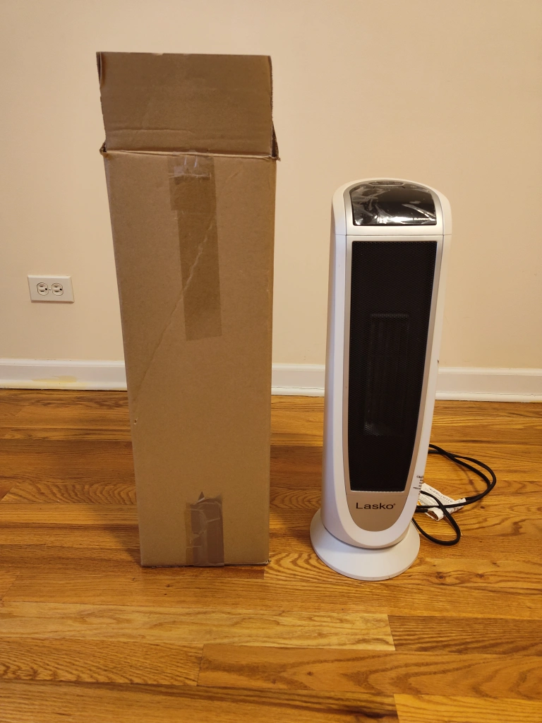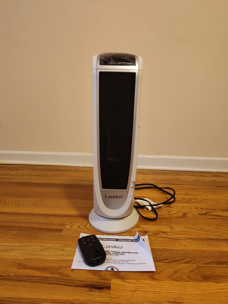 Selling a used Lasko ceramic tower heater with remote control. It has an oscillation feature and comes with the original box and instructions. Perfect for supplemental heating in your home! 23" tall 6" wide