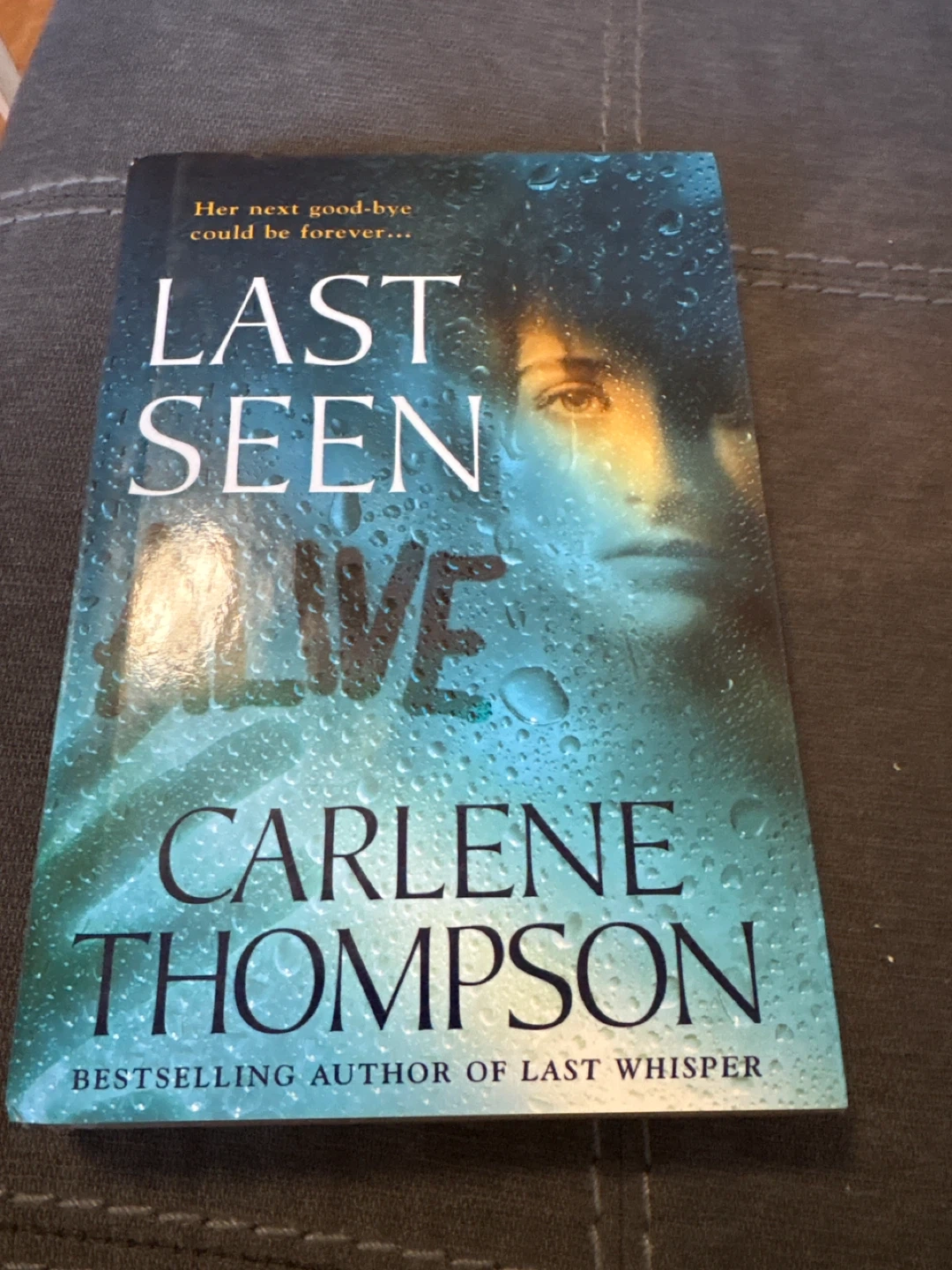 60Selling the book Last Seen Alive by Carlene Thompson. It's by the bestselling author of Last Whisper. Her next goodbye could be forever...