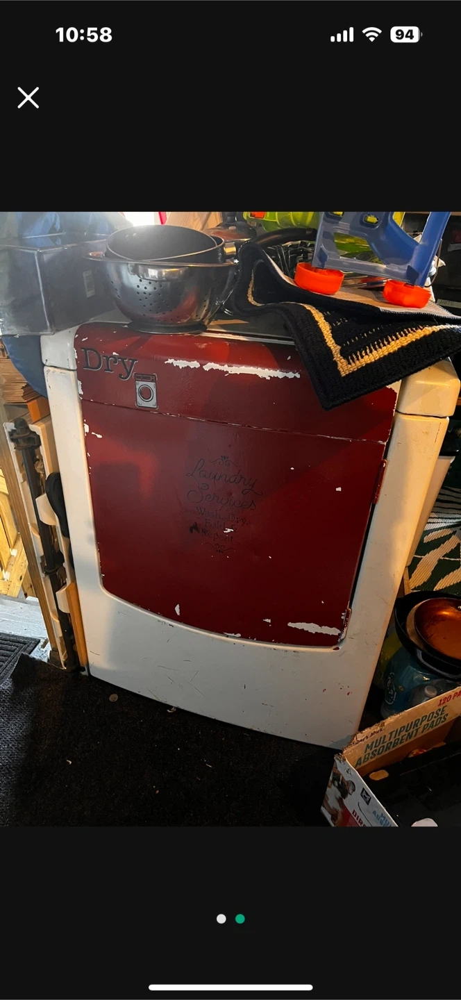 Selling a laundry dryer. It shows signs of wear and tear, as seen in the photos. Perfect for someone looking for a project or a unique piece!