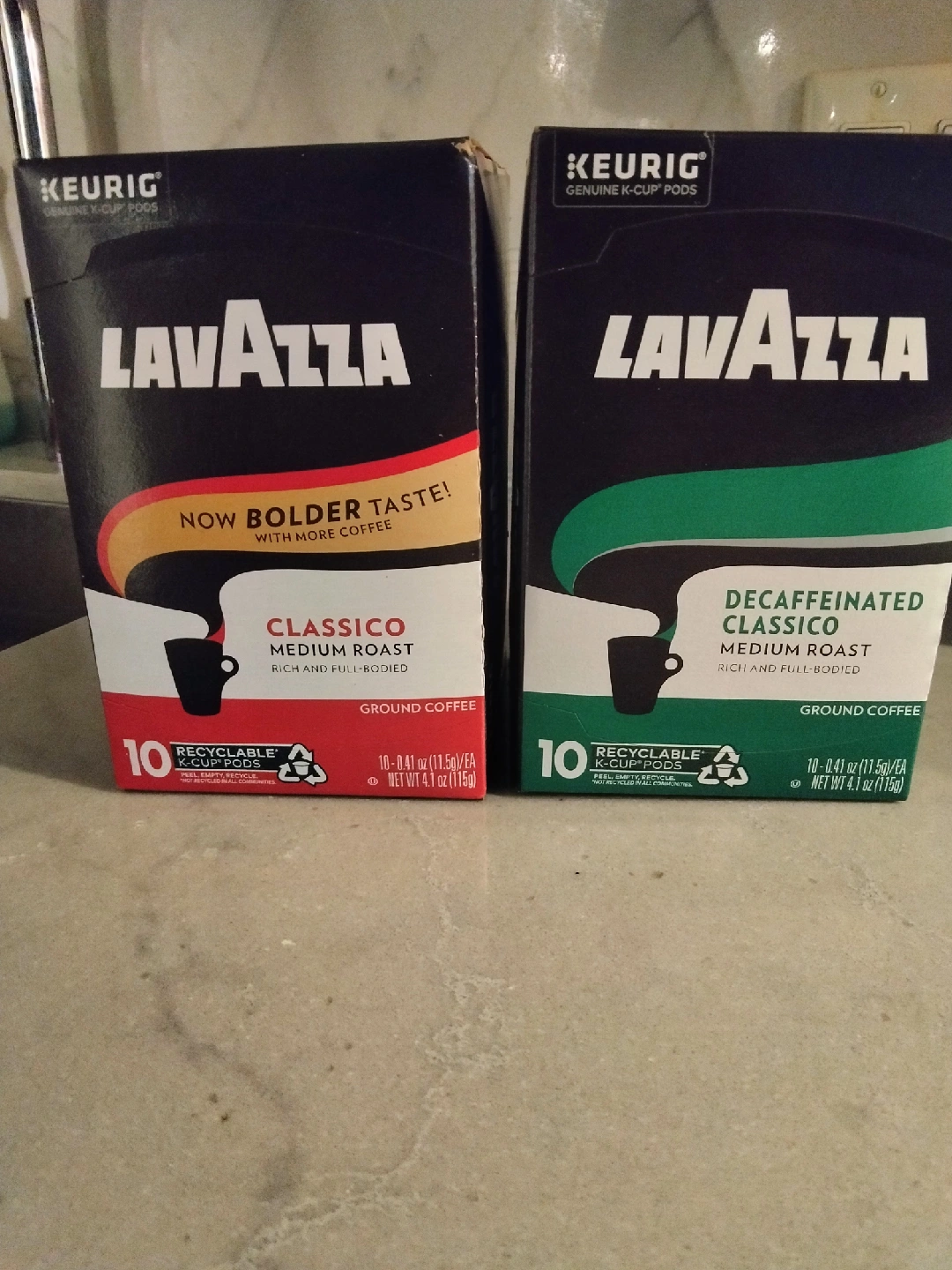 12I have Lavazza Keurig K-Cup Pods available! There are two types: Classico Medium Roast (rich and full-bodied) and Decaffeinated Classico Medium Roast (rich and full-bodied). Each box contains 10 recyclable K-Cup pods of ground coffee