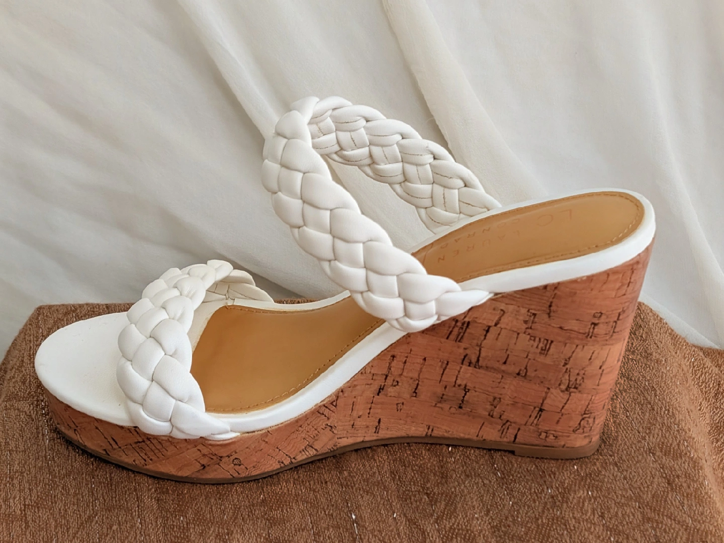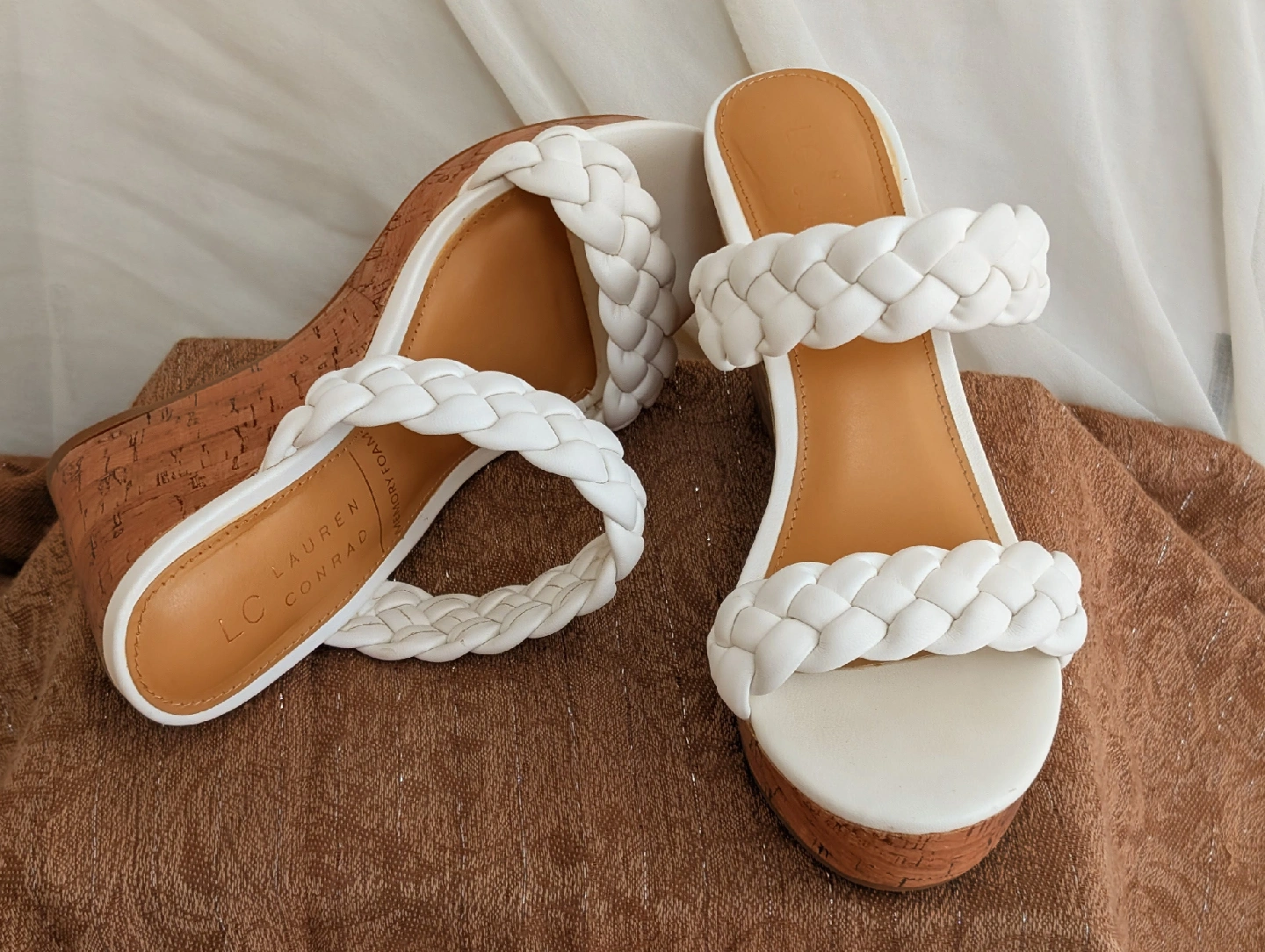 LC Lauren Conrad White Braided Wedge Sandals- Size 6.5