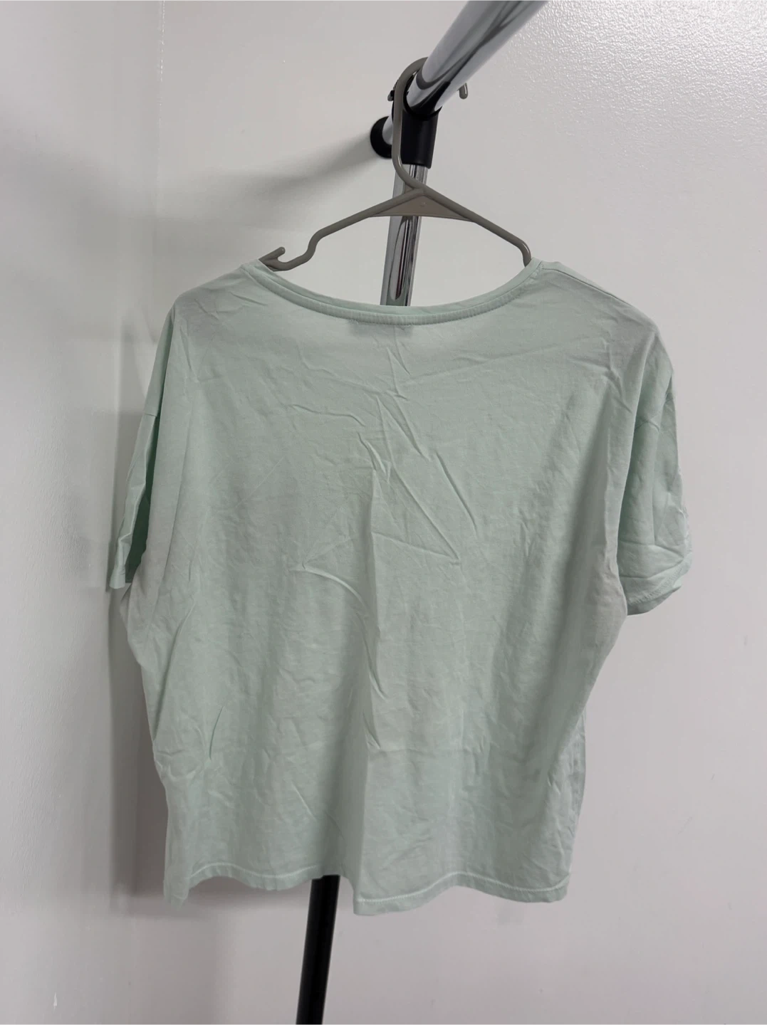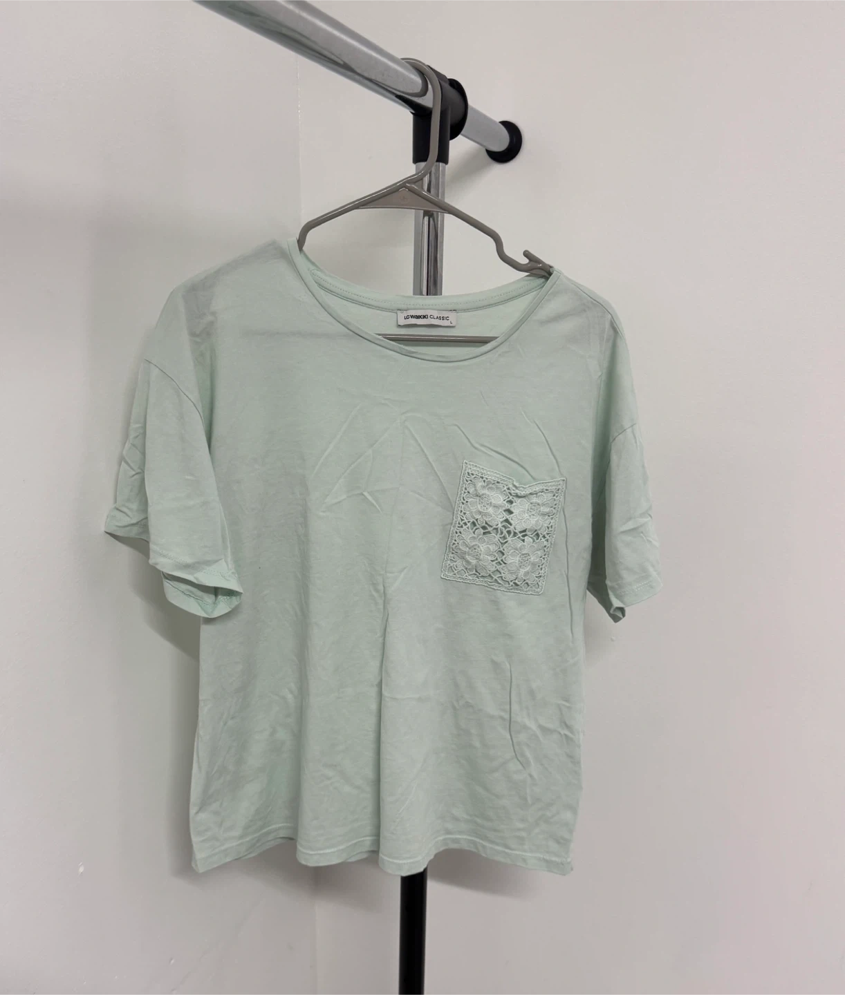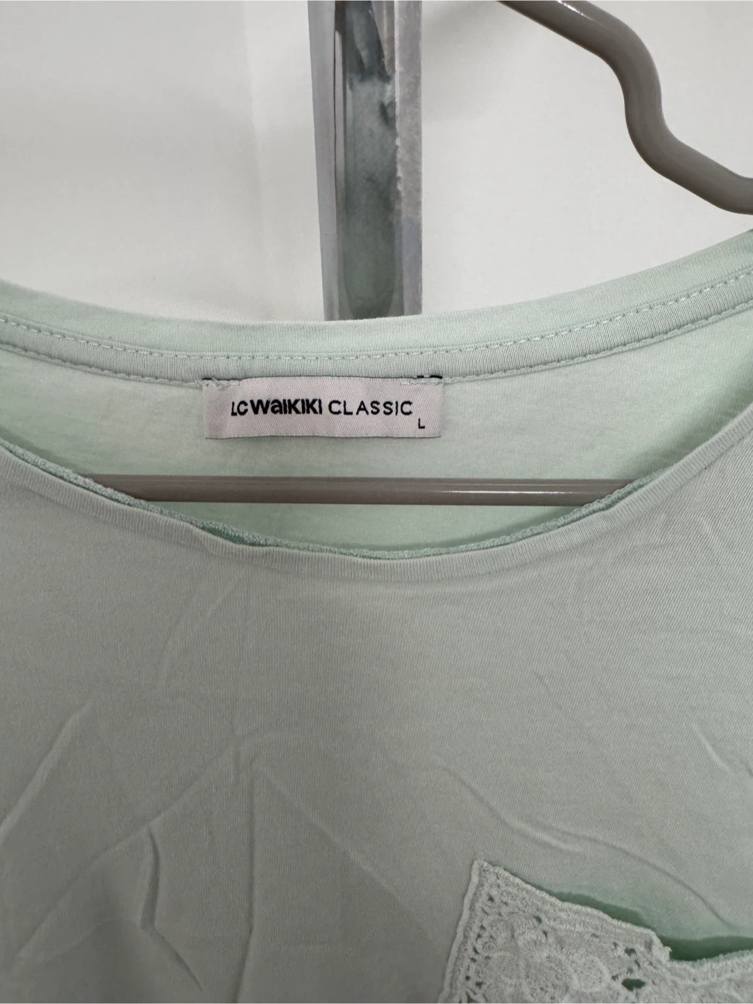 Selling a pale mint green summer/spring LC Waikiki Classic T-shirt in size L. It has a cute lace pocket detail.