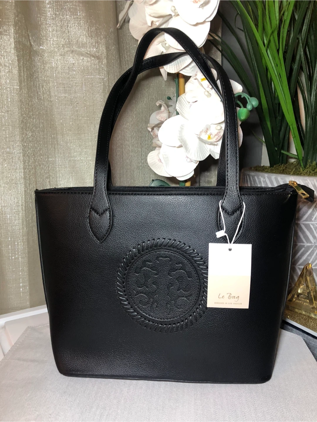 51Here's a stylish black tote bag from Le Bag! It's a classic and versatile piece that can complement any outfit. Perfect for everyday use or special occasions