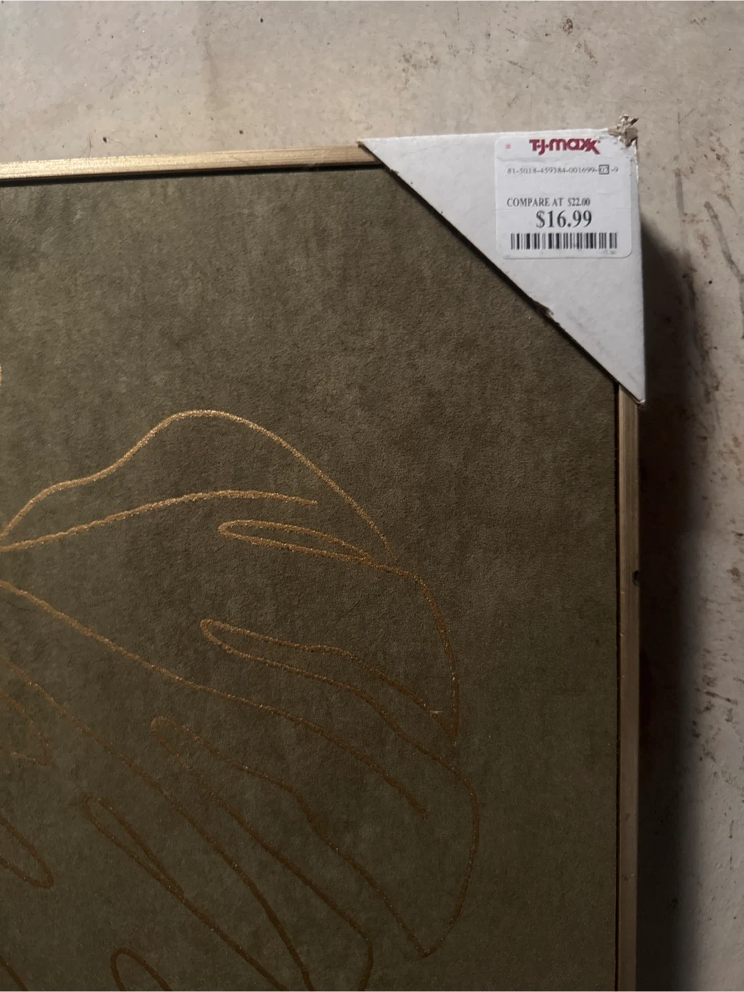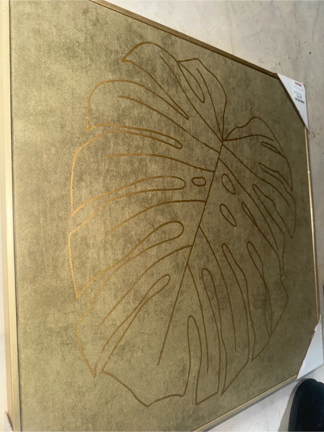 This beautiful wall art from TJ Maxx features a stylish monstera leaf design in gold. It's in great condition and originally bought for $16.99. It would look great in any room!