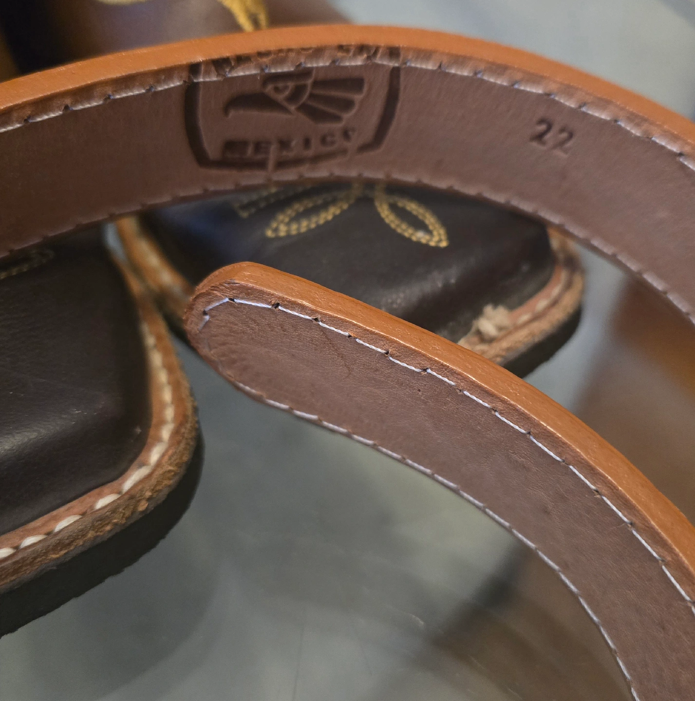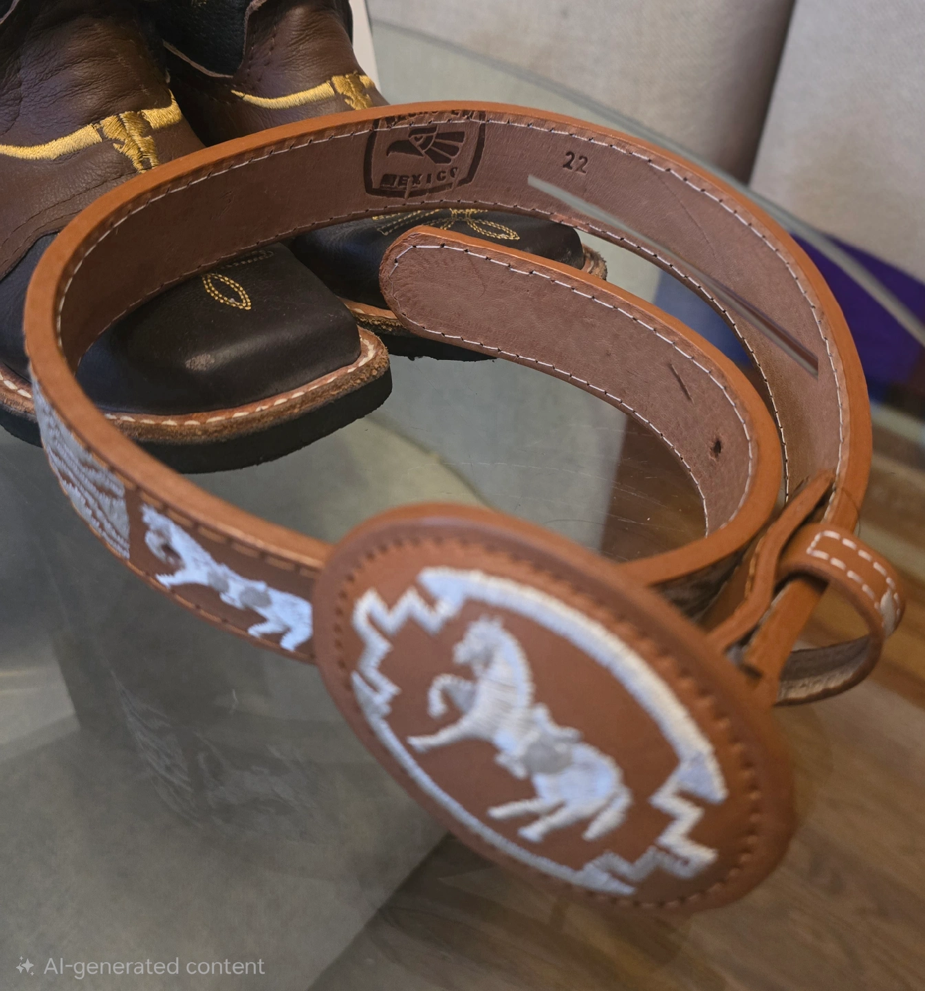 10Selling a stylish leather belt featuring a unique horse design! The belt is marked with 'Mexico' and size 22. It's in good condition and ready to add some flair to your outfit