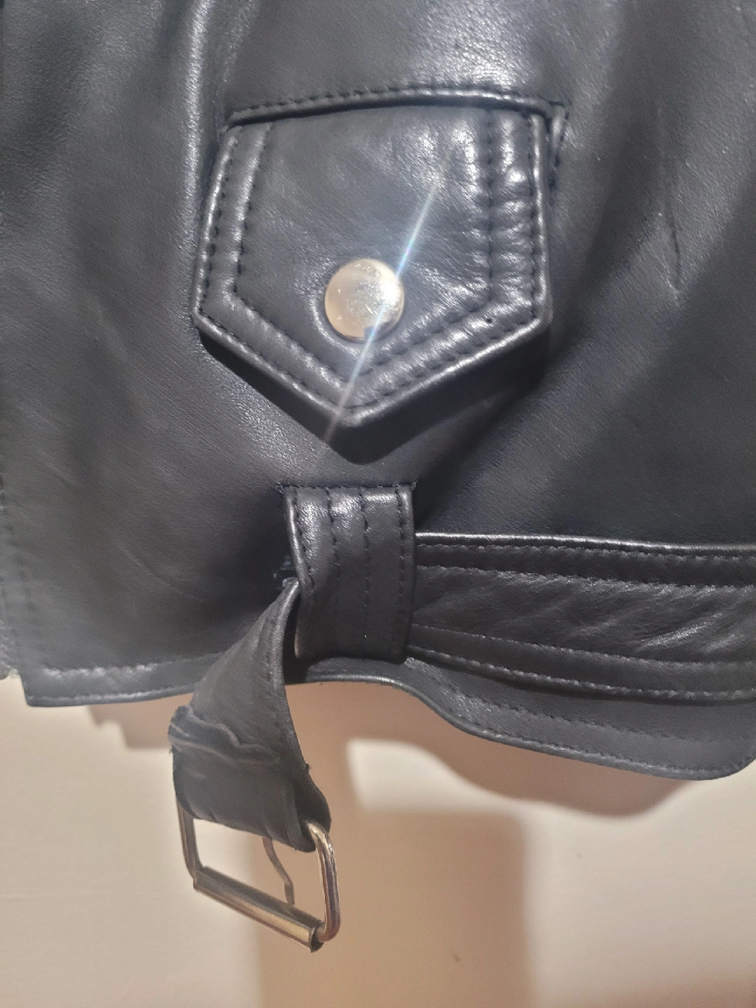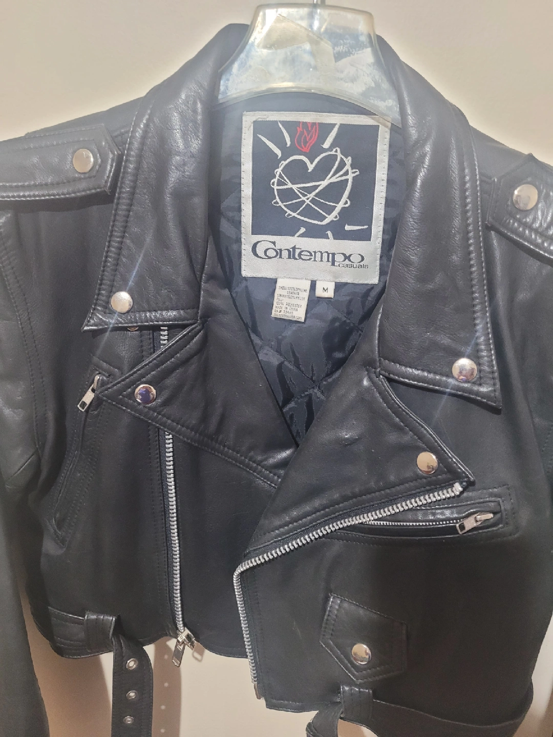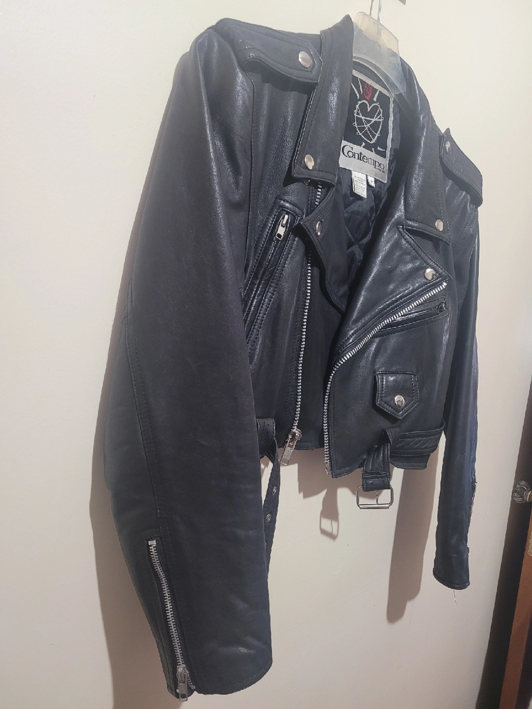 Selling a Contempo Casuals black leather jacket in size medium. This is good quality leather and is a stylish piece with a classic biker jacket design. Great for adding an edgy touch to any outfit! Clean, no damage. Cash only!