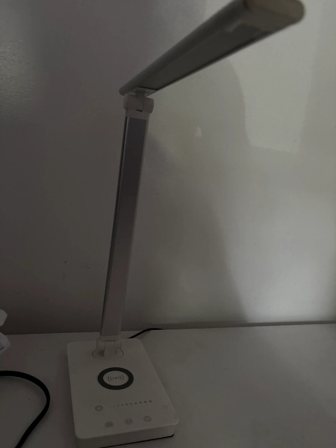 75Selling a sleek LED desk lamp! It features a built-in wireless charger for your phone or other devices. Perfect for a desk or nightstand