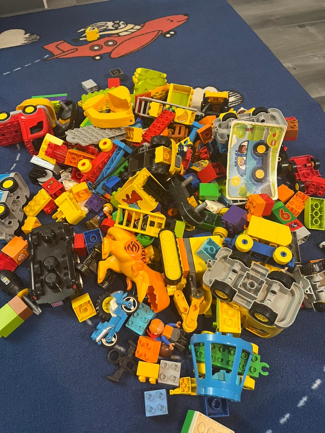 15A mixed set of Lego Duplo blocks, perfect for toddlers and young children! There are a variety of colors and shapes to encourage creativity and building fun. Great for developing fine motor skills and imagination