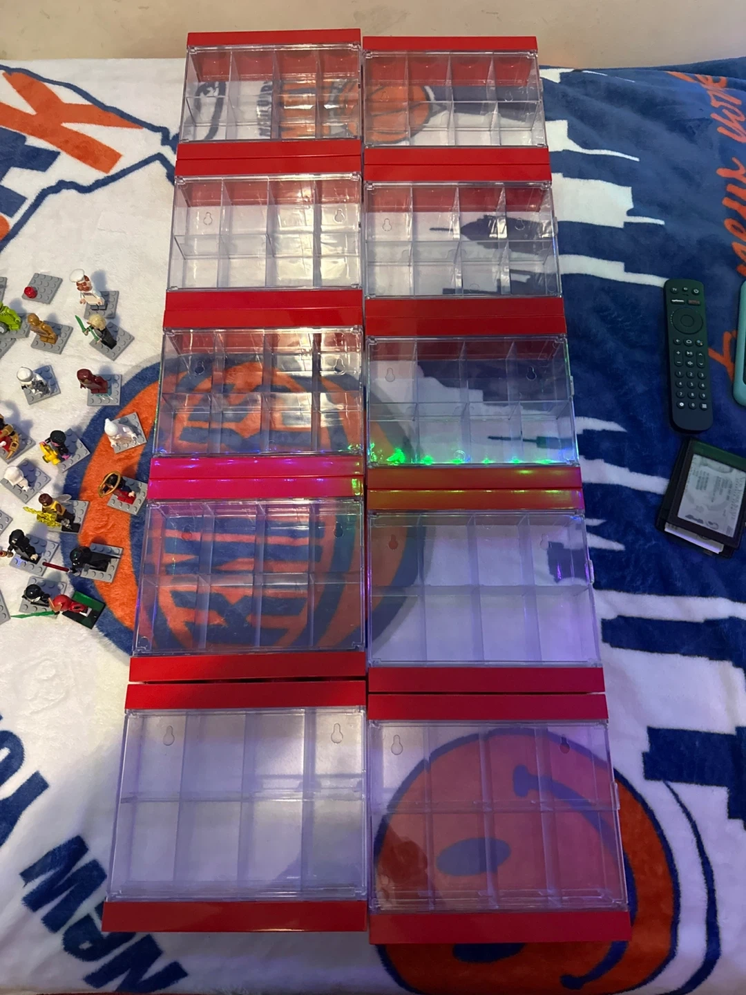 Selling a Lego minifigure display case! It's in great condition and perfect for showing off your collection. I HAVE 10 of them. If I get a text on the day that you want them I’ll send them out to your stay