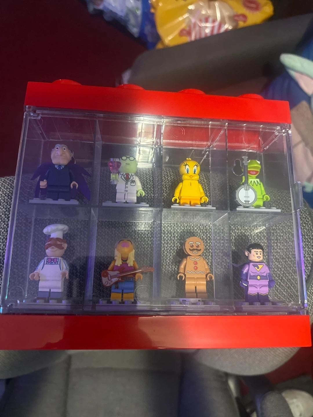 Selling a complete set of LEGO Minifigures from The Muppets series! All eight characters are included and displayed in a red LEGO case. A fun set for any Muppets or LEGO fan
