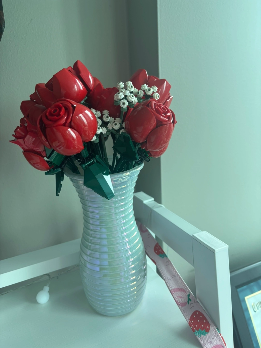 Lego rose flower arrangement. I can leave assembled or disassemble. Missing a few small pieces, instructions, and box.