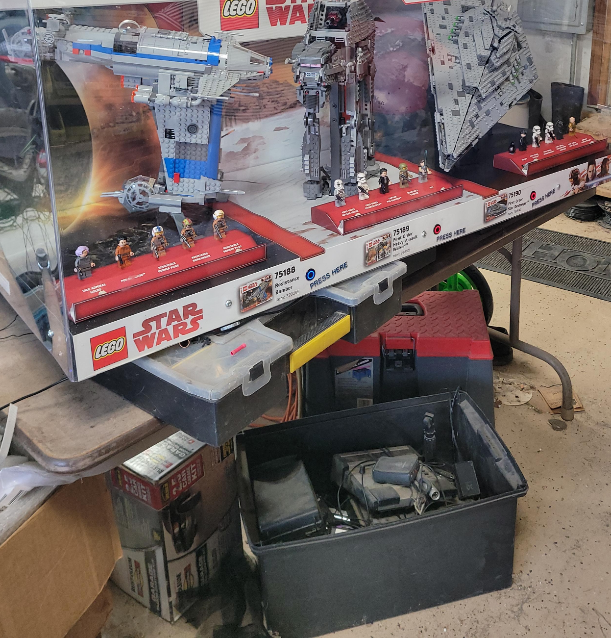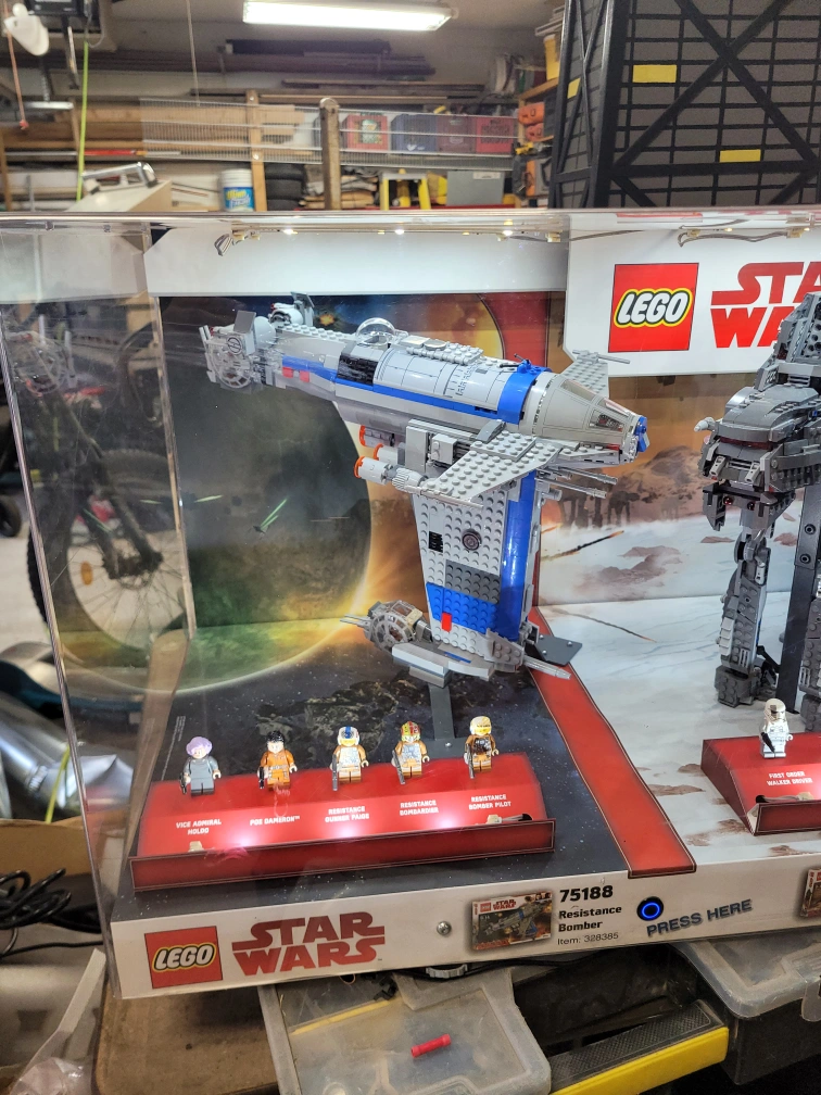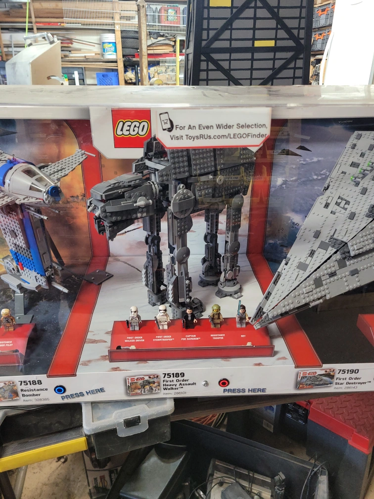 Selling a LEGO Star Wars Toys R Us display set. This includes the Resistance Bomber (75188), First Order Heavy Assault Walker (75189), and First Order Star Destroyer (75190). Great for any Star Wars or LEGO enthusiast!