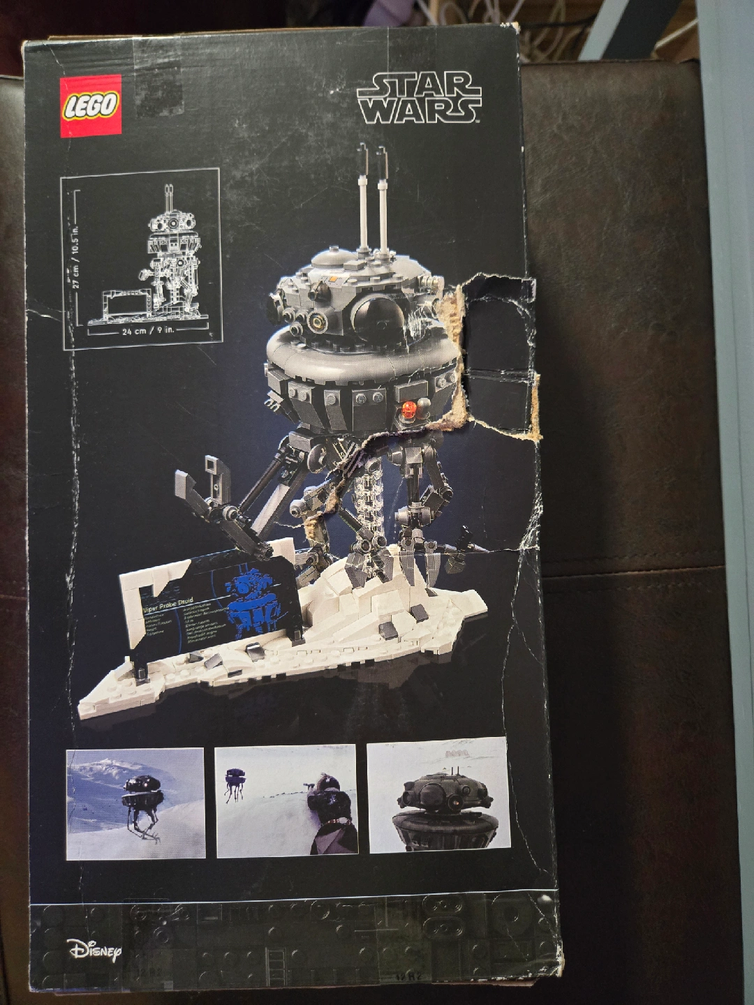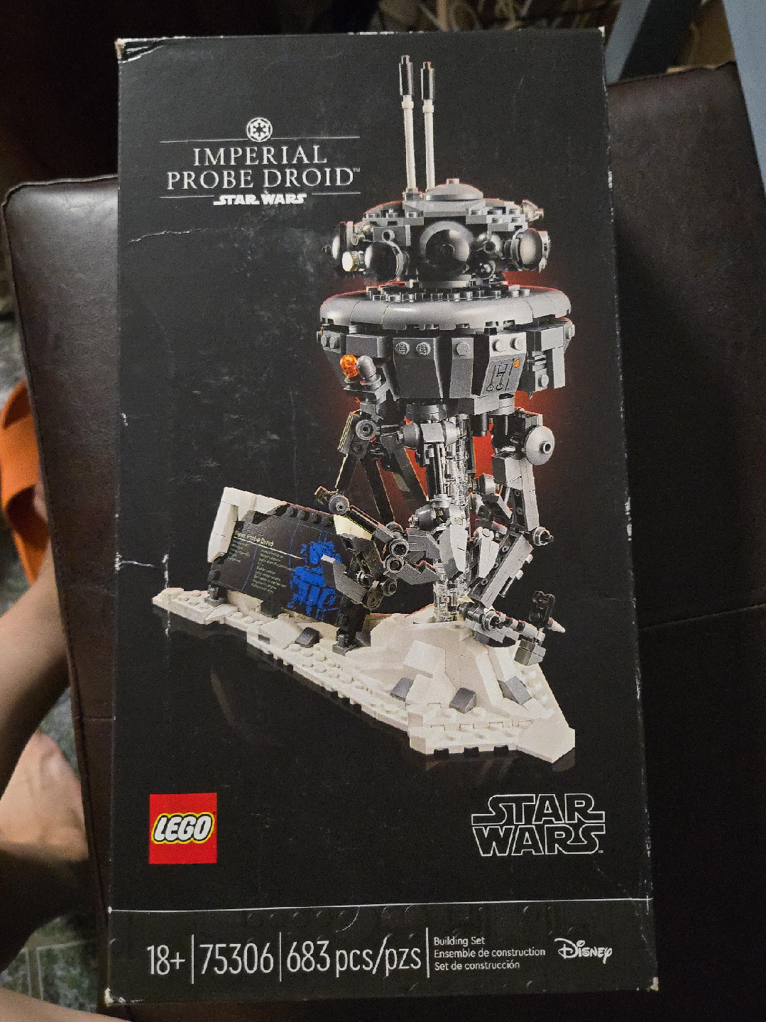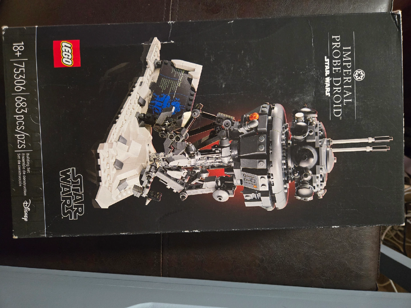 Selling a LEGO Star Wars Imperial Probe Droid set (75306). The box includes 683 pieces to build this cool Star Wars droid. Recommended for ages 18+
