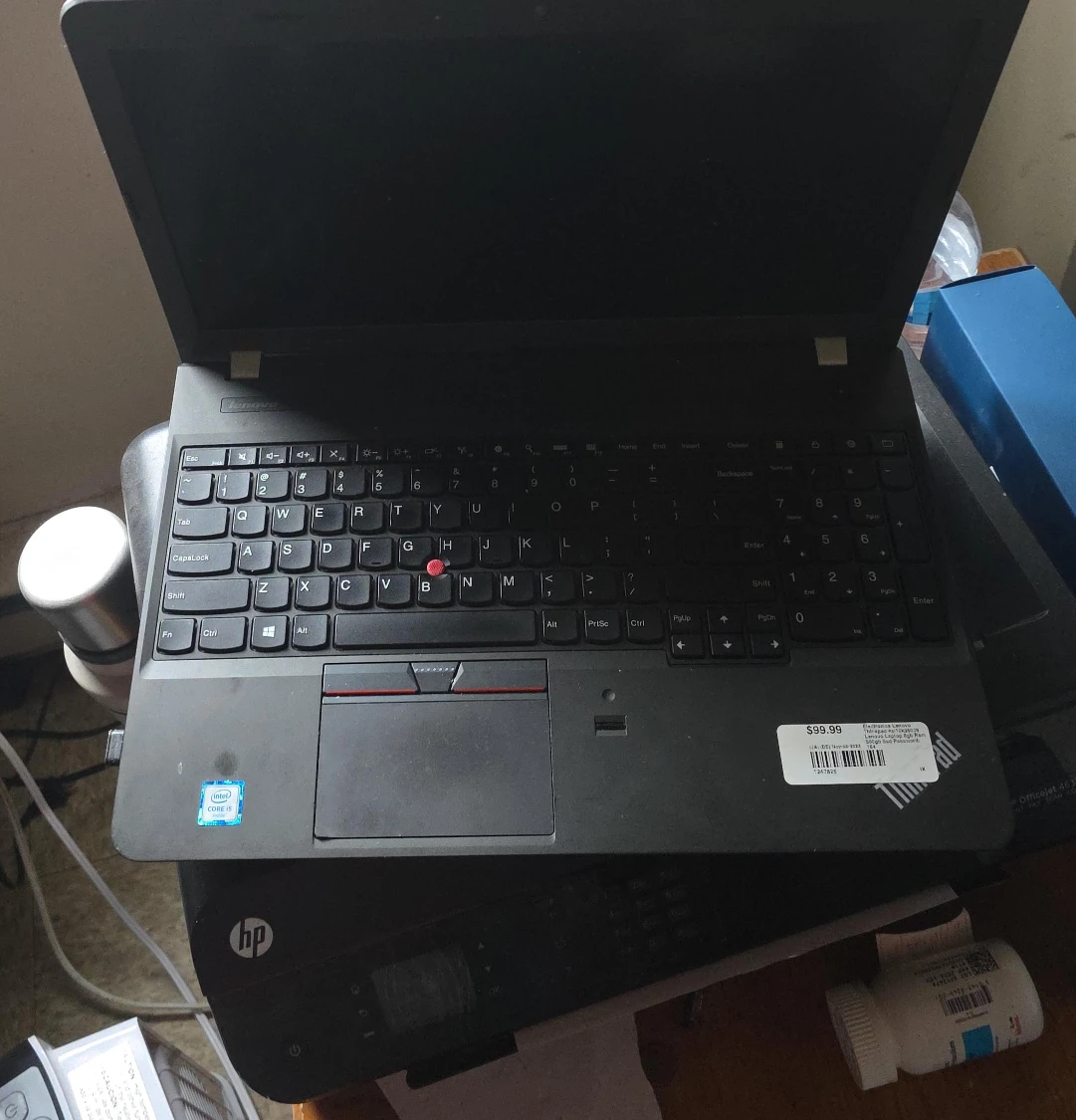 5Selling a Lenovo ThinkPad laptop with an Intel Core i5 processor. It has a classic ThinkPad design with the iconic red trackpoint. The laptop also features a sticker indicating it was originally priced at $99.99 it come with the charger.