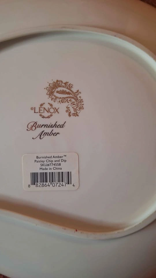 Lenox Burnished Amber Paisley Chip & Dip Set 15” x 11.5”