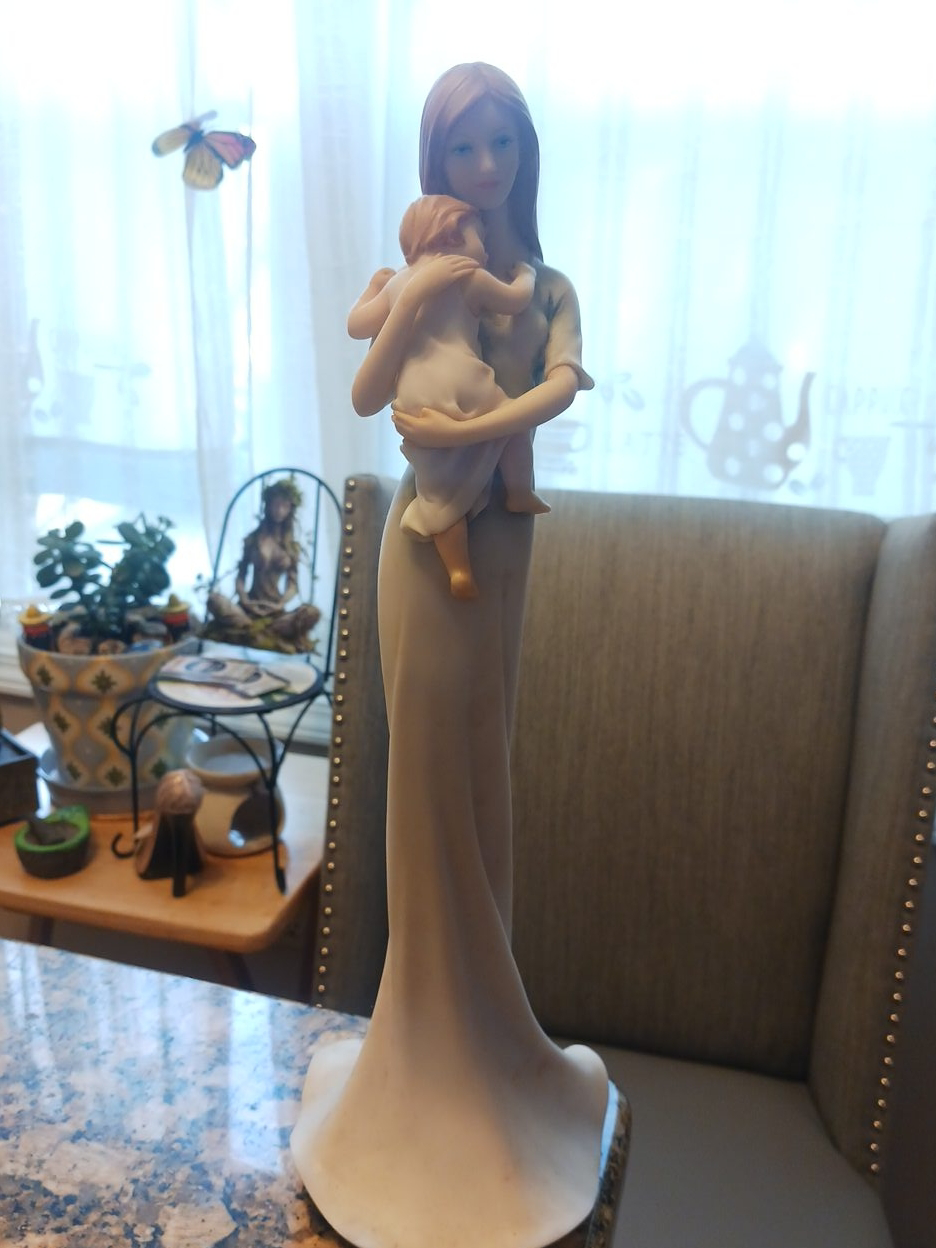 This is a beautiful Lenox figurine depicting a mother holding her child. It's in great condition and would make a lovely addition to any home