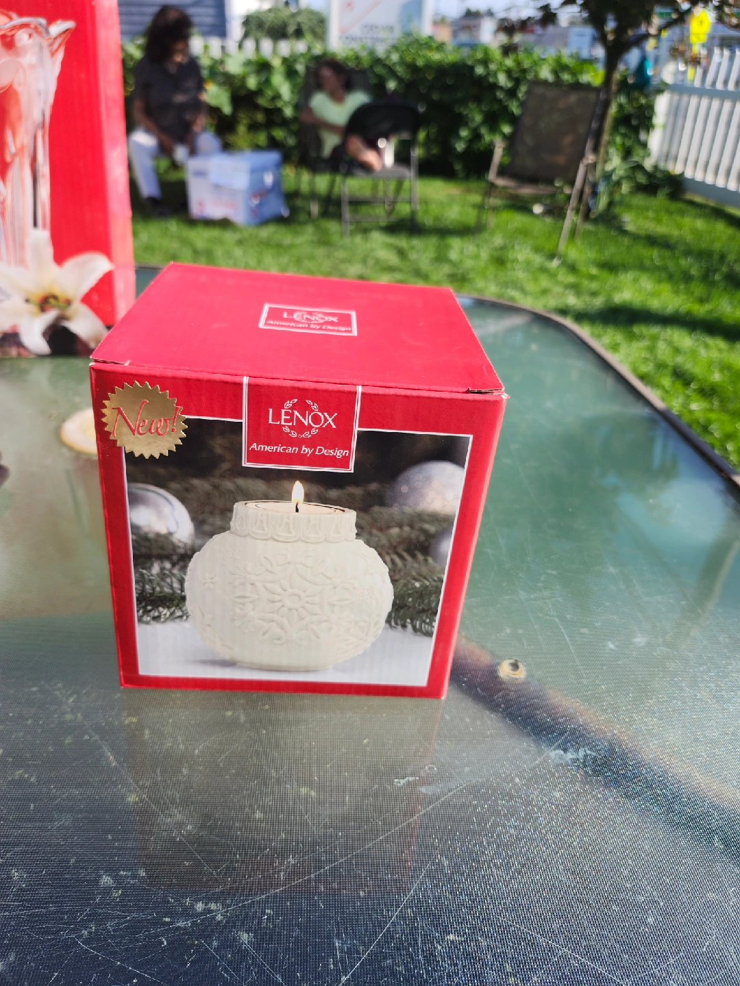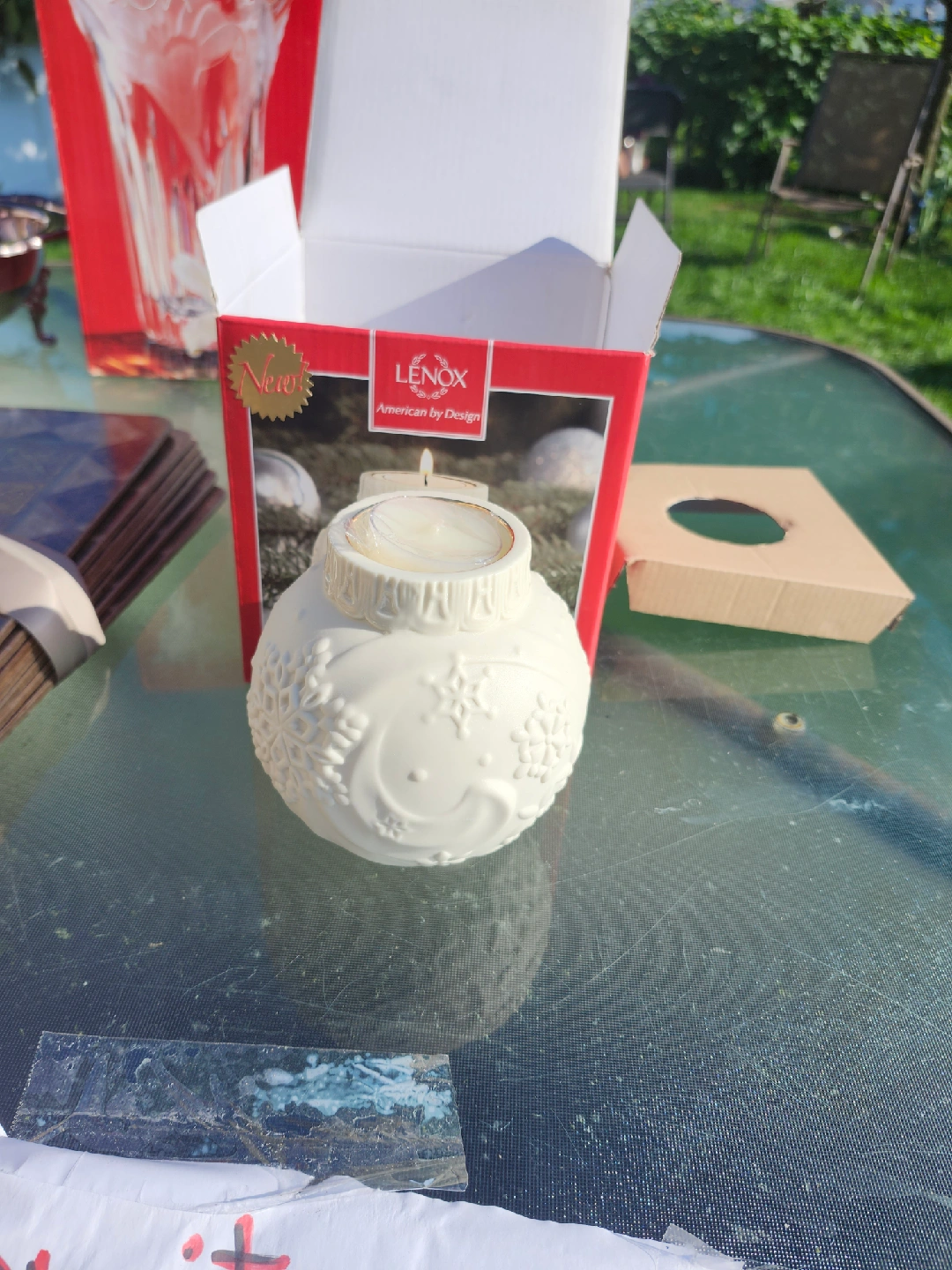 Selling a brand new Lenox Ornament Glow Snowflake Scroll Votive! It comes in the original box. This beautiful piece is perfect for adding a touch of elegance to any room. It's an American by Design product, ensuring quality and style