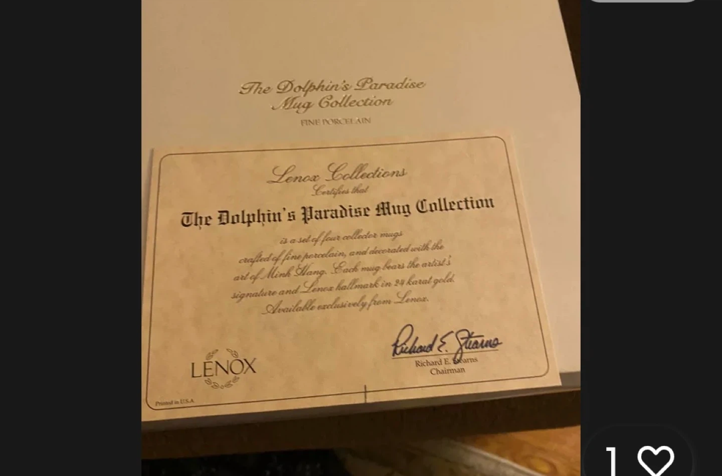 Selling a set of four collector mugs from Lenox's The Dolphin's Paradise Mug Collection! They are crafted of fine porcelain and decorated with the art of Wyland. Each mug bears the artist's signature and Lenox hallmark in 24 karat gold New In Box