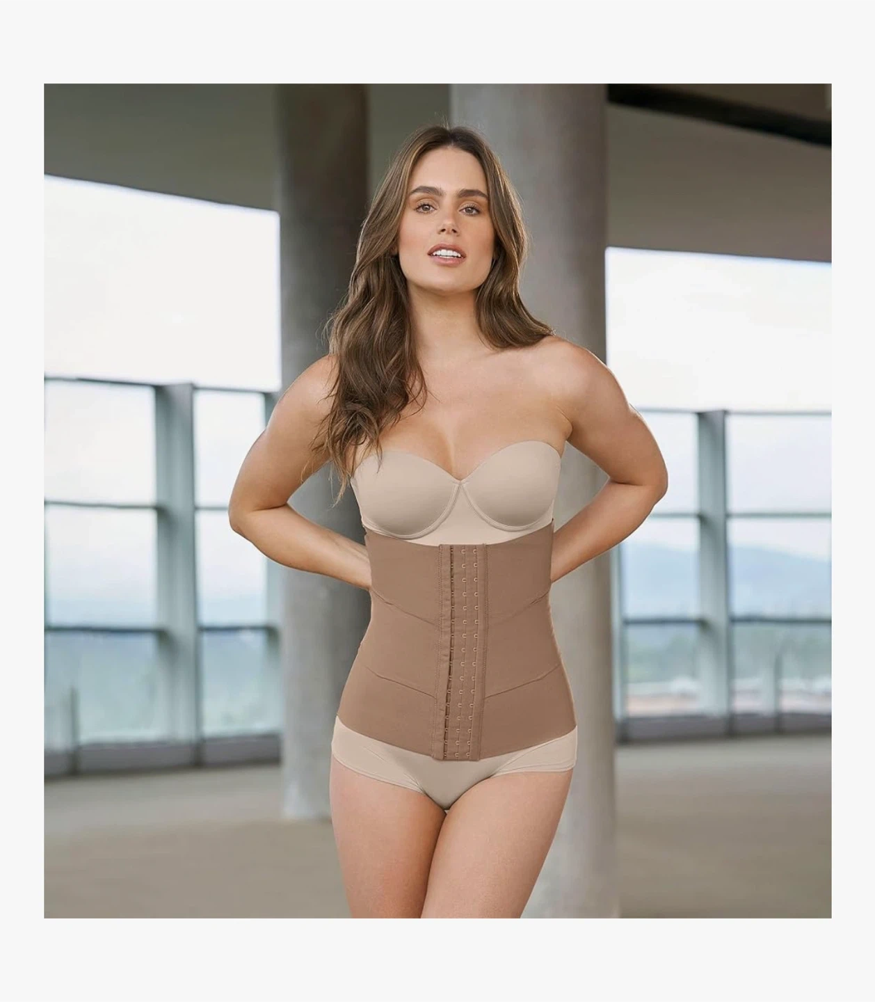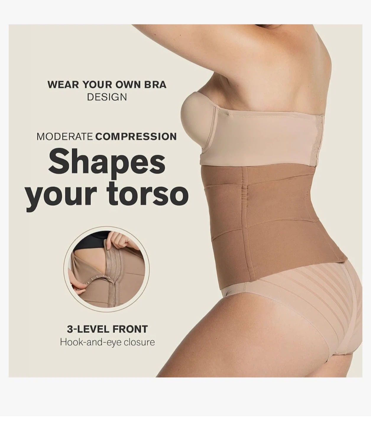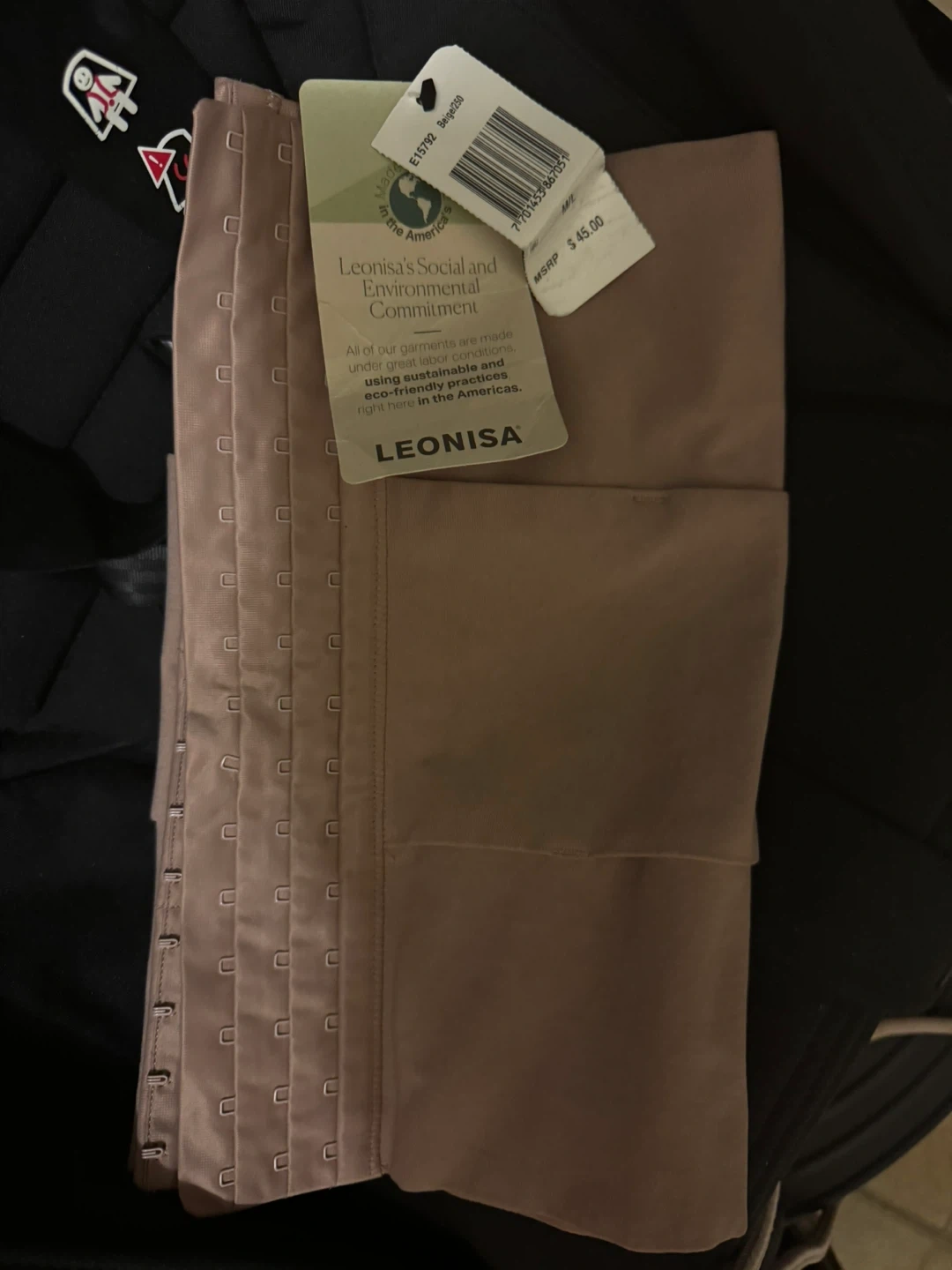 This Leonisa waist cincher shapes your torso with moderate compression. It features a 3-level front hook-and-eye closure. The MSRP tag shows $45.00