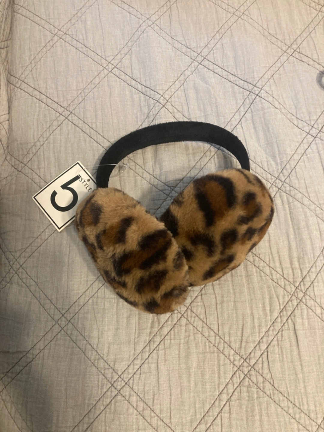 Fuzzy earmuffs. Leopard print. Black headband. Great for winter.