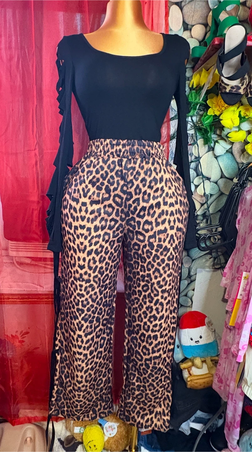 153Stylish leopard print palazzo pants with a comfortable elastic waistband! These pants are perfect for adding a bold statement to your wardrobe. The wide-leg design ensures a relaxed and flattering fit. Great for casual outings or dressing up for a night out