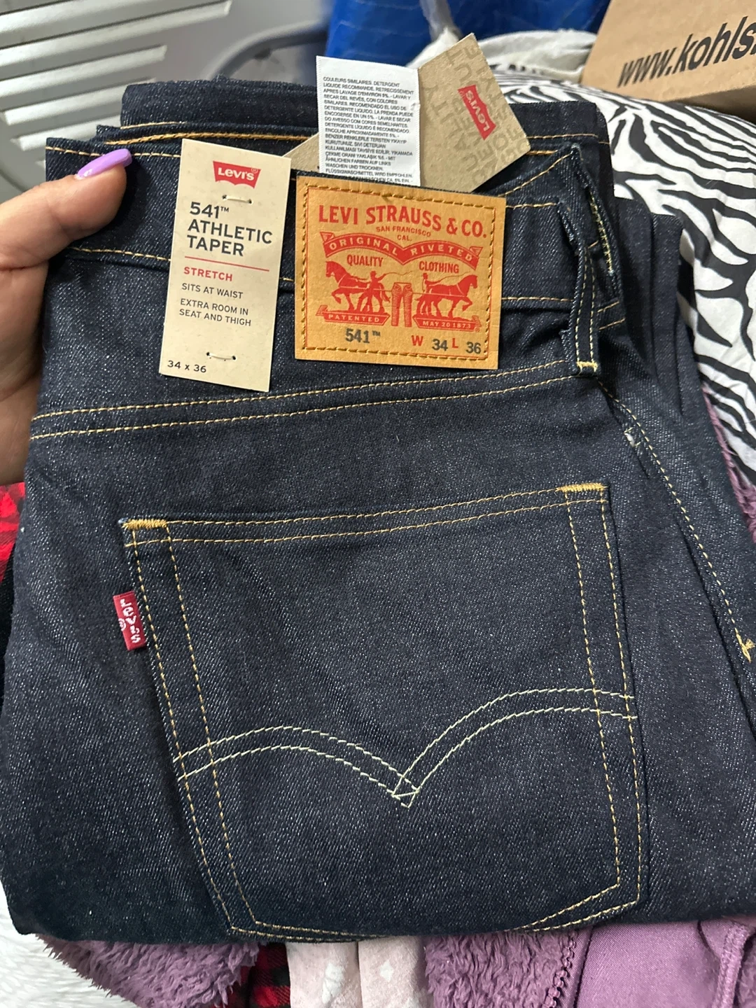 10Levi's 541 Athletic Taper jeans, size 34x36! These jeans are designed with a comfortable fit that sits at the waist and provides extra room in the seat and thigh. They also have a slight stretch to them! Perfect for everyday wear.