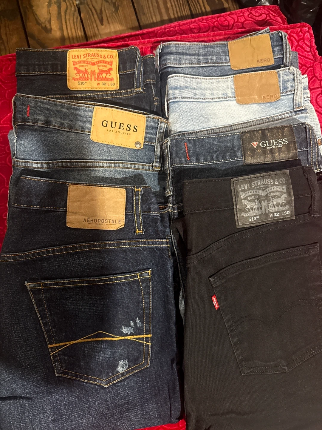10I have a collection of jeans for sale! There are jeans from Levi's (510 and 513), Guess, and Aeropostale. All jeans are size 32x30