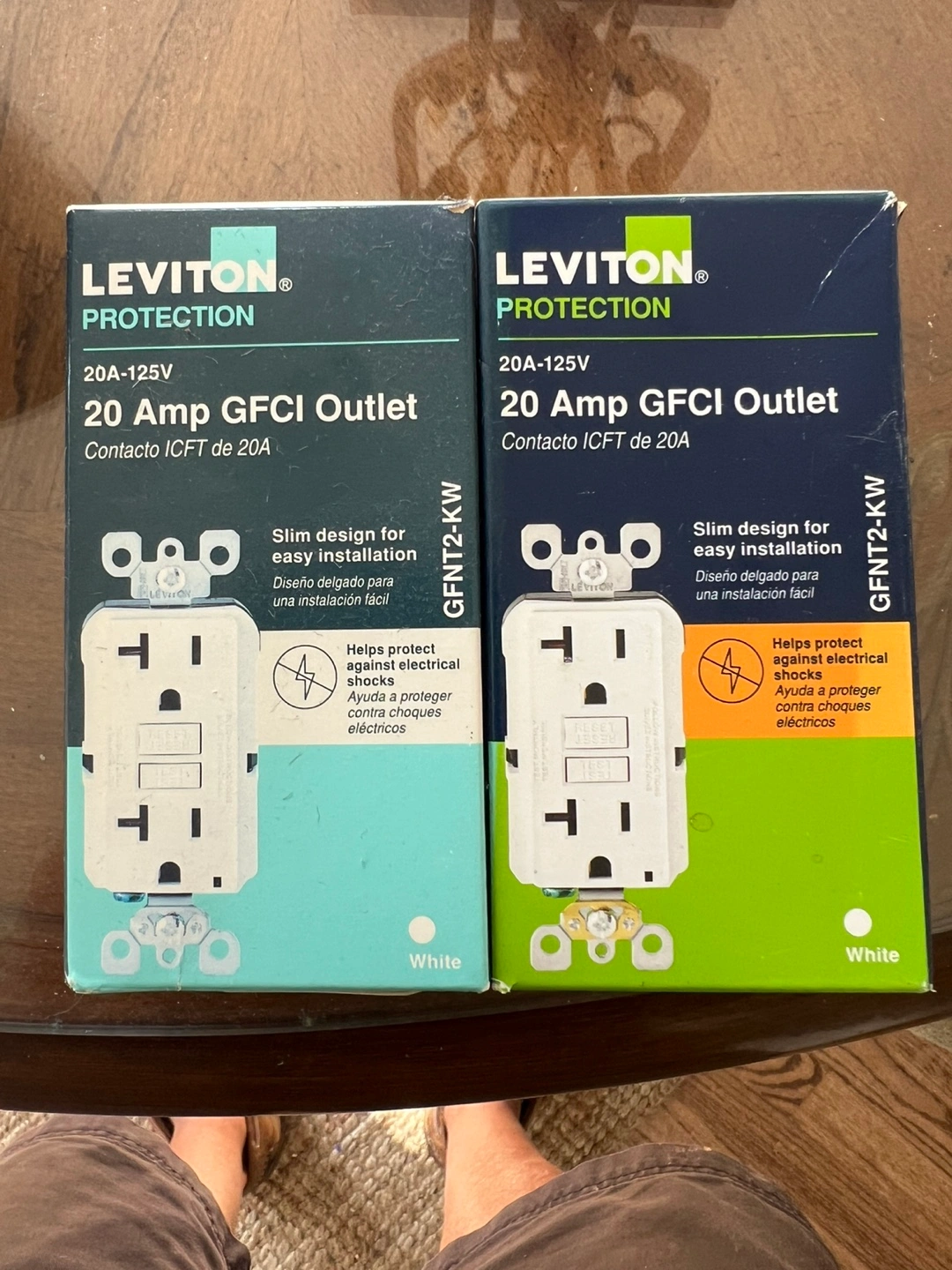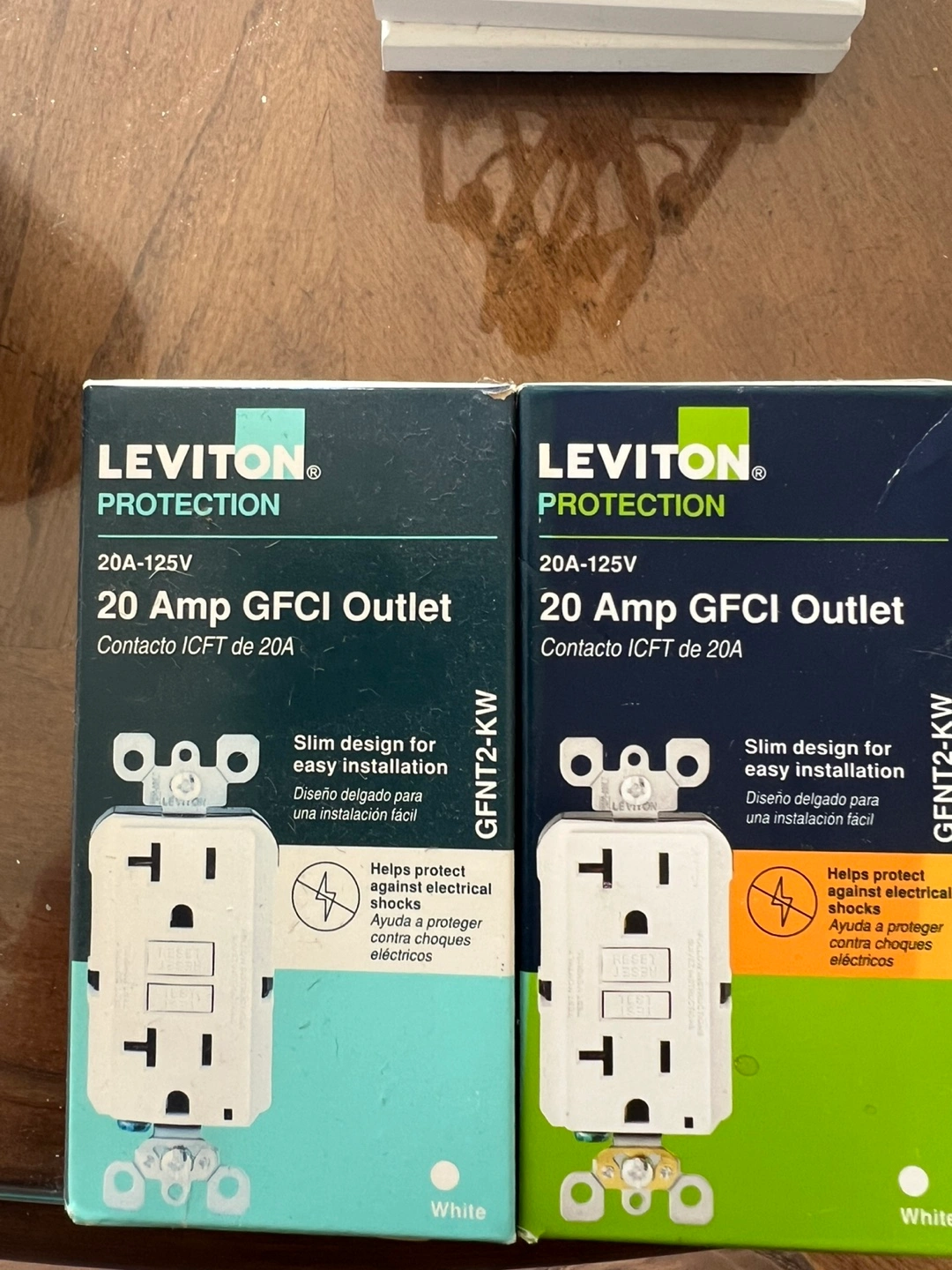 I have two new Leviton 20 Amp GFCI Outlets for sale. They are white and designed for easy installation. Helps protect against electrical shocks.