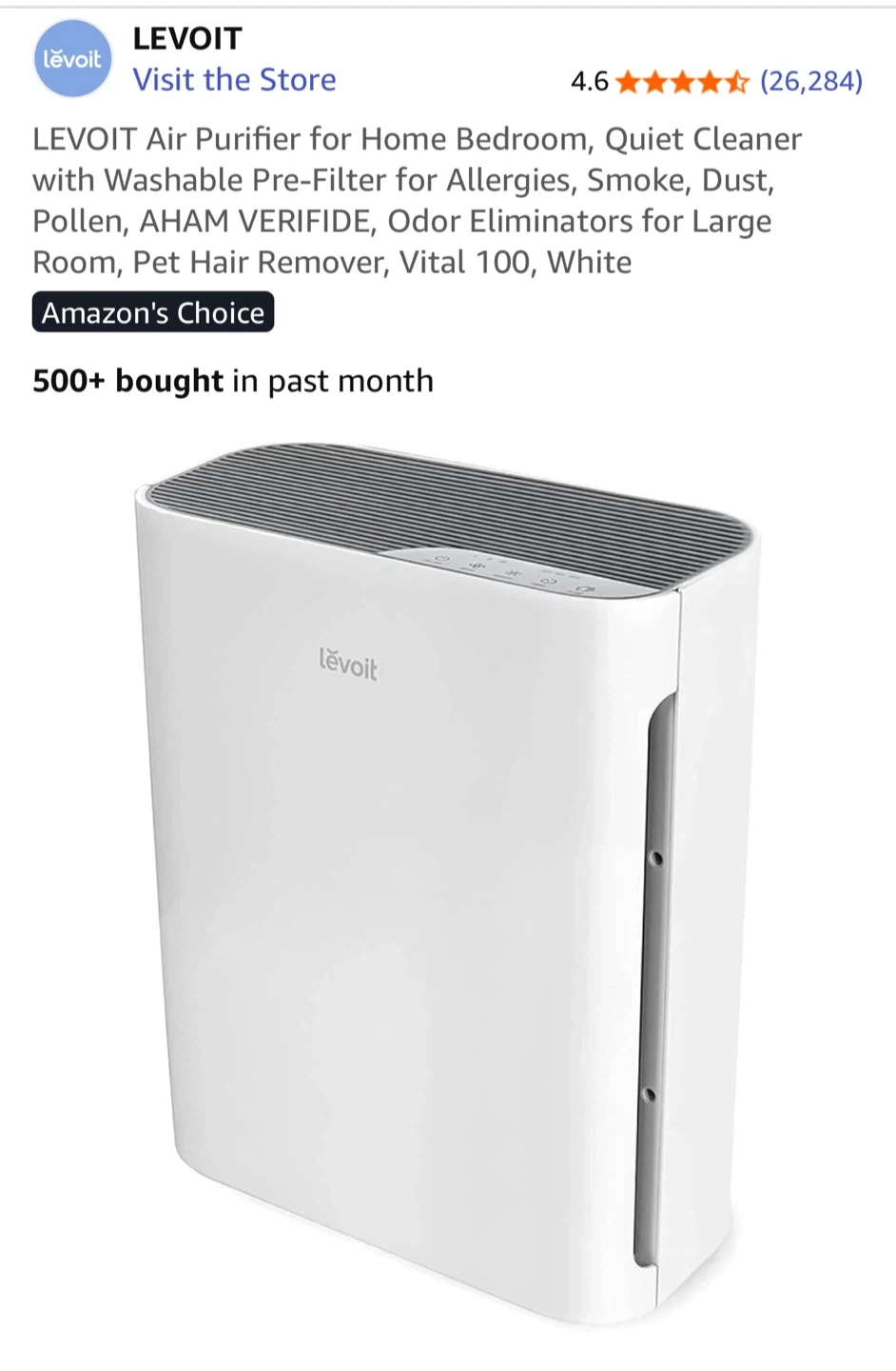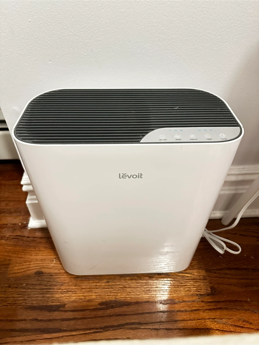 Selling a Levoit Vital 100 Air Purifier in white! *coming with a new replacement air filter* It's a quiet cleaner with a washable pre-filter, perfect for allergies, smoke, dust, pollen, and pet hair removal. The timer function lets you set it for 2, 4, or 8 hours
