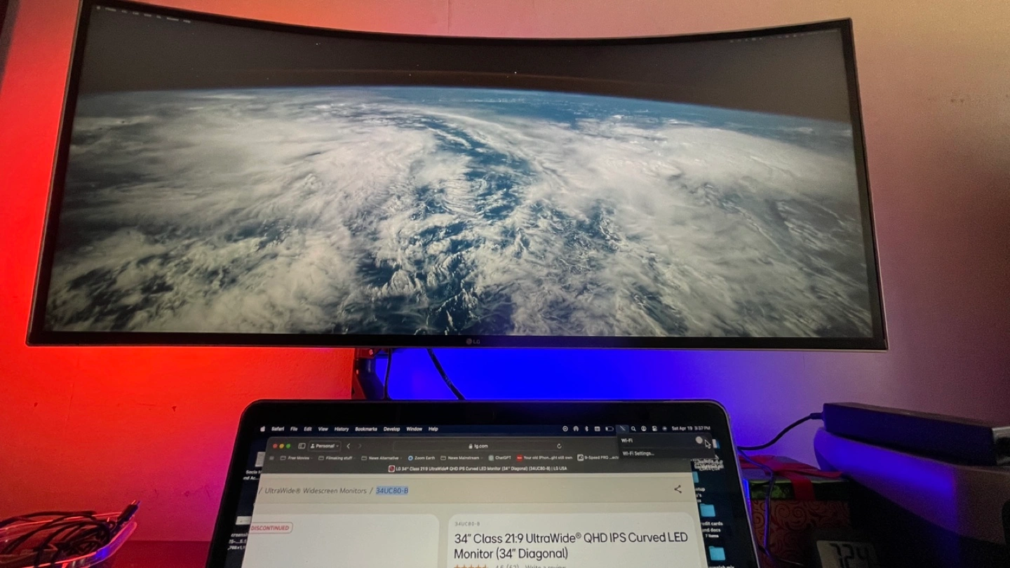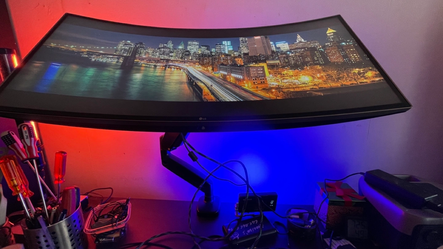 14134 inch ultrawide curved monitor. Great condition. Includes desk arm stand.