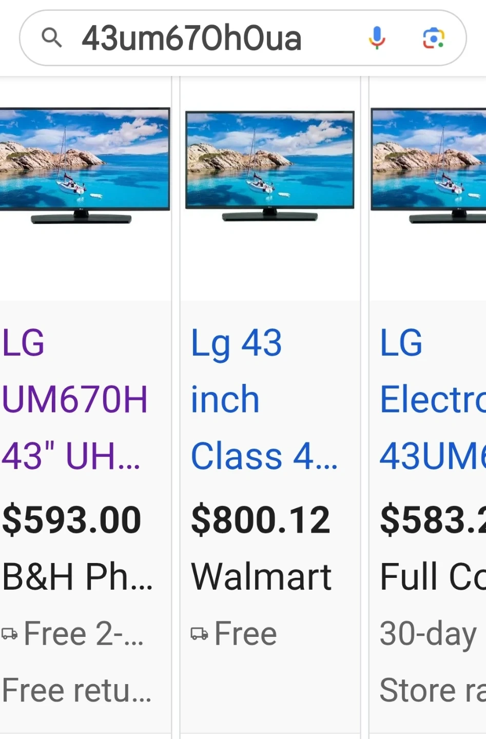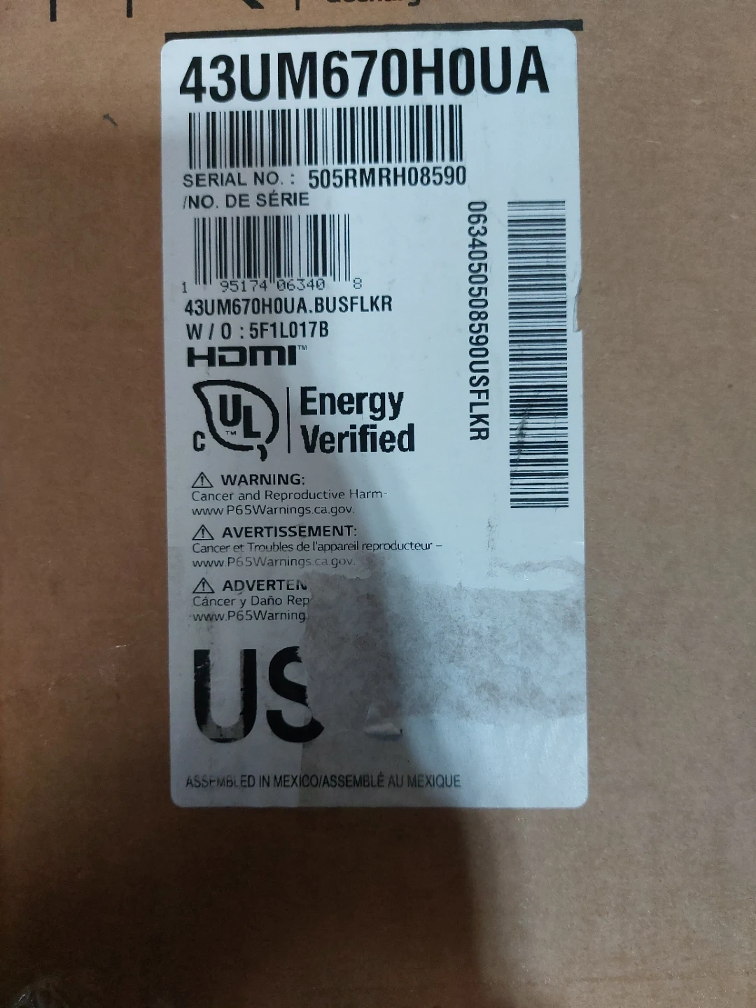 65LG 43" Class 4K UHDTV (2160p) HDR Smart LED-LCD TV (43UM670H0UA) Highlights: UHD 4K (3840 x 2160) Native Resolution Pro:Centric Direct CMS Pro:Idiom Support 3 x HDMI Inputs, Including 1 w/ ARC RF Coaxial Antenna Input Built-In Wi-Fi & Bluetooth Internet-of-Things Ready IR Remote & Tabletop Stand Included NEW With WARRANTY EASY FINANCING AVAILABLE